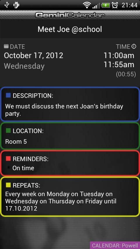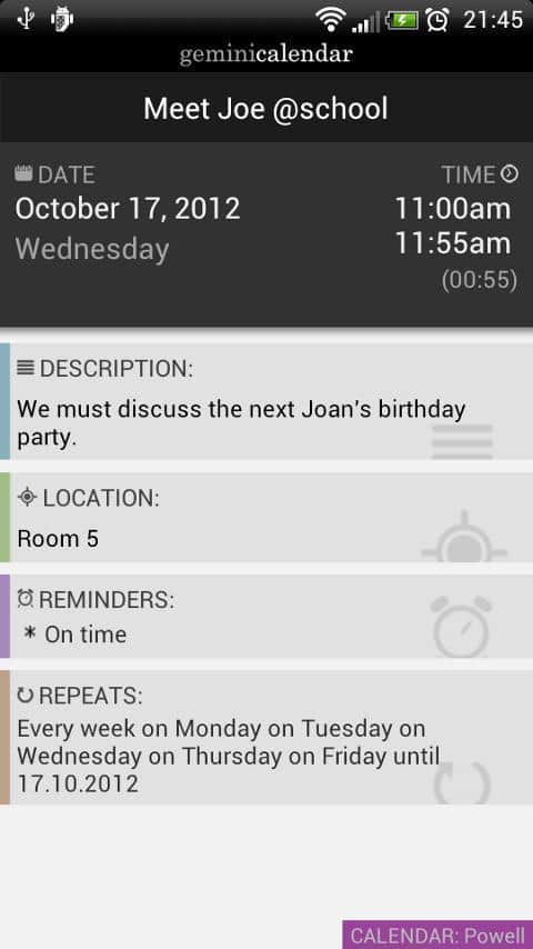 Gemini Calendar - Удобный календарь, с синхронизацией Google Calendar. Это и календарь, и заметки одновременно, сделан с красивым интерфейсом, и весьма функционален. Так же есть различные темы и оформления, так что вы сможете изменить внешний вид на свой вкус. Система повторения событий, через абсолютно любой промежуток времени. Удобное и простое управление календарем.