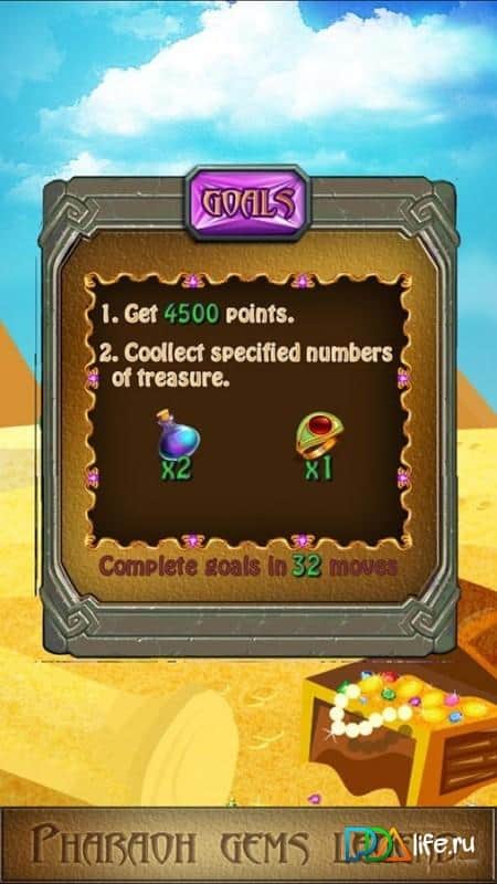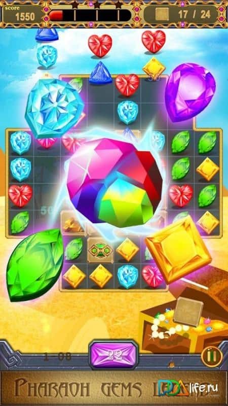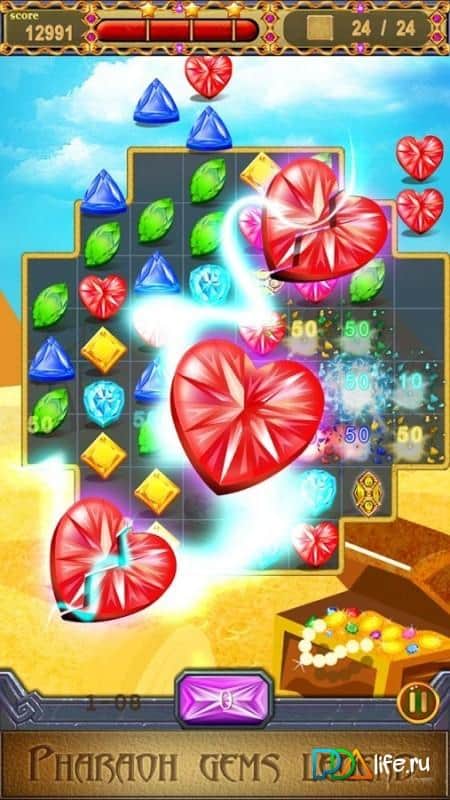 Gems Dynasty - Match 3 – путешествуйте по древнему Египту и пытайтесь заполучить все сокровища. В этой игре вашей задачей будет соединять между собой одинаковые по цвету камни. Составляйте ряды из трех и более камней и исследуйте многочисленные древние храмы, пытаясь заполучить волшебные артефакты и сокровища. Соединяйте одинаковые камни в цепочки и запускайте цепную реакцию, наблюдая за красочными эффектами и взрывами. Применяйте различные усиления, чтобы очистить игровое поле от всех камней и взорвать заблокированные драгоценные камни. В игре представлено более 200 уровней, каждый из которых порадует вас отличной яркой графикой и разнообразными локациями.