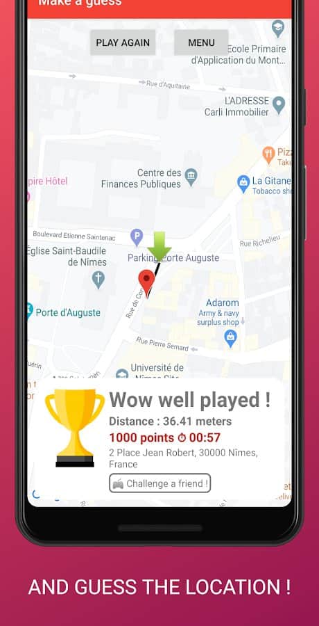 GeoGuess Game – игра-приложение, с помощью которого вы сможете путешествовать не выходя из дома, наслаждайтесь красивыми видами и реальными снимками в трёхмерной графике различных достопримечательностей городов и стран. Составьте маршрут путешествий, посмотрите заранее, как они выглядят и сразу решите, хотите ли вы увидеть их вживую. Находите случайные места и угадывайте, откуда то или иное строение. Пробирайтесь сквозь темные переулки и наслаждайтесь чёткой графикой и прорисованными деталями и мелочами.