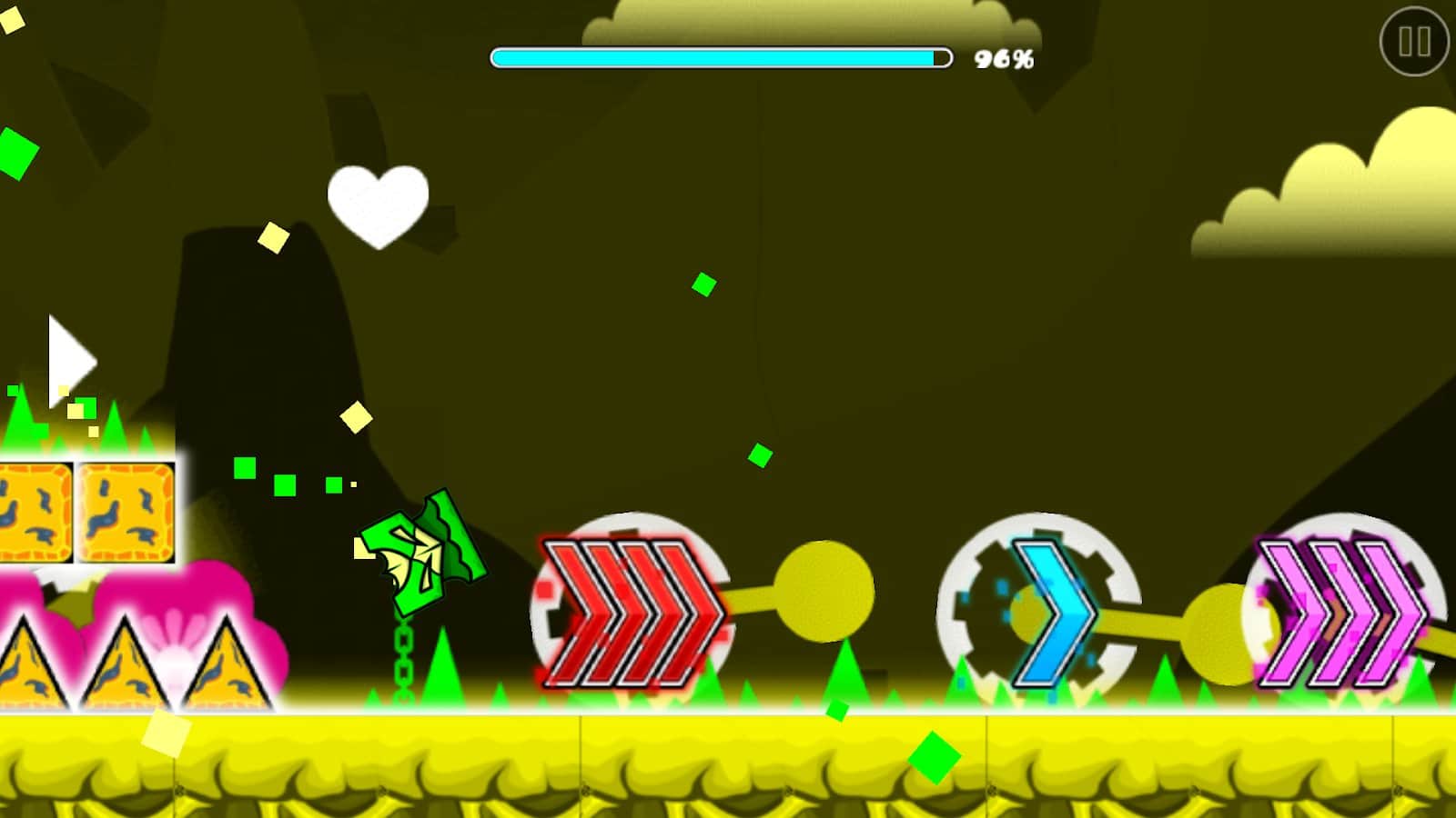 Geometry Darkness – динамичная аркада на андроид, где вы будете управлять различными персонажами. Управляйте стремительно движущимся персонажем по многочисленным уровням и обходите все преграды у себя на пути. Покажите на деле скорость своей реакции, нажимая вовремя на экран своего телефона и заставляя персонажа преодолевать ловушки. По пути не забывайте собирать полезные усиления и проходить через порталы, чтобы открыть новые уровни. Открывайте новых персонажей, которые порадуют вас уникальным внешним видом. Яркая неоновая графика и захватывающий геймплей надолго привлекут ваше внимание в этой игре.