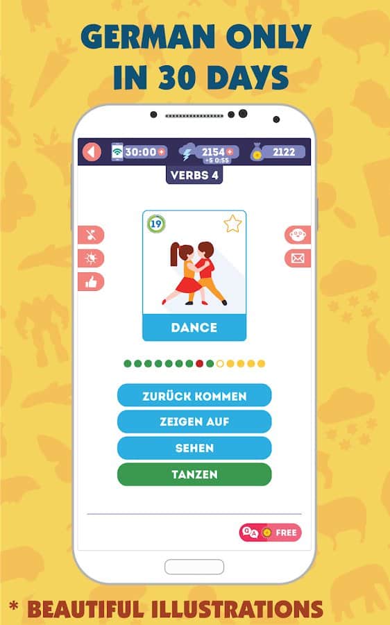 German for Beginners: LinDuo HD – обучающая игра на андроид, которая даст вам бесплатный старт для изучения немецкого языка. Самоучитель немецкого языка не займет у вас много времени на изучение вы будете тратить по 10-15 минут в день. Такое обучение является более эффективным по отношению к часовым урокам, которые проводятся раз в неделю. Этот самоучитель разработан так чтобы для запоминания немецких слов вы использовали дополнительно зрительную и слуховую память.