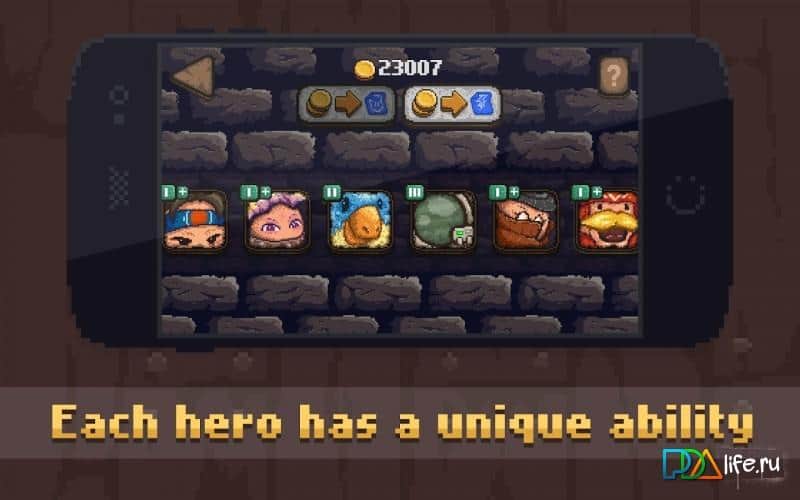 Бывают игры забавные, бывают смешные, бывают серьезные, и даже жестокие. А бывают игры сочетающие все это сразу. Создатели Get React решили выпустить в свет некий микс из жанров, направлений, идей и прочего. Так что перед нами бесконечный ранер с элементами платформера выполненный в пиксельном стиле. Игровой процесс достаточно прост, при помощи тапов управляйте персонажем, перемещая его от стены до стены, при этом главная задача собрать максимальное количество звезд и сохранить голову в целости. А голове пострадать придется, ведь двигаясь вперед ваше герою придется проламывать препятствия самым важным органом тела, да собственно и самым крепким. А у вашего персонажа голова на порядок крепче чем у обычных людей, и у вас будет масса возможностей убедиться в этом. А учитывая тот факт что все уровни генерируются случайно предугадать развитие событий просто невозможно.