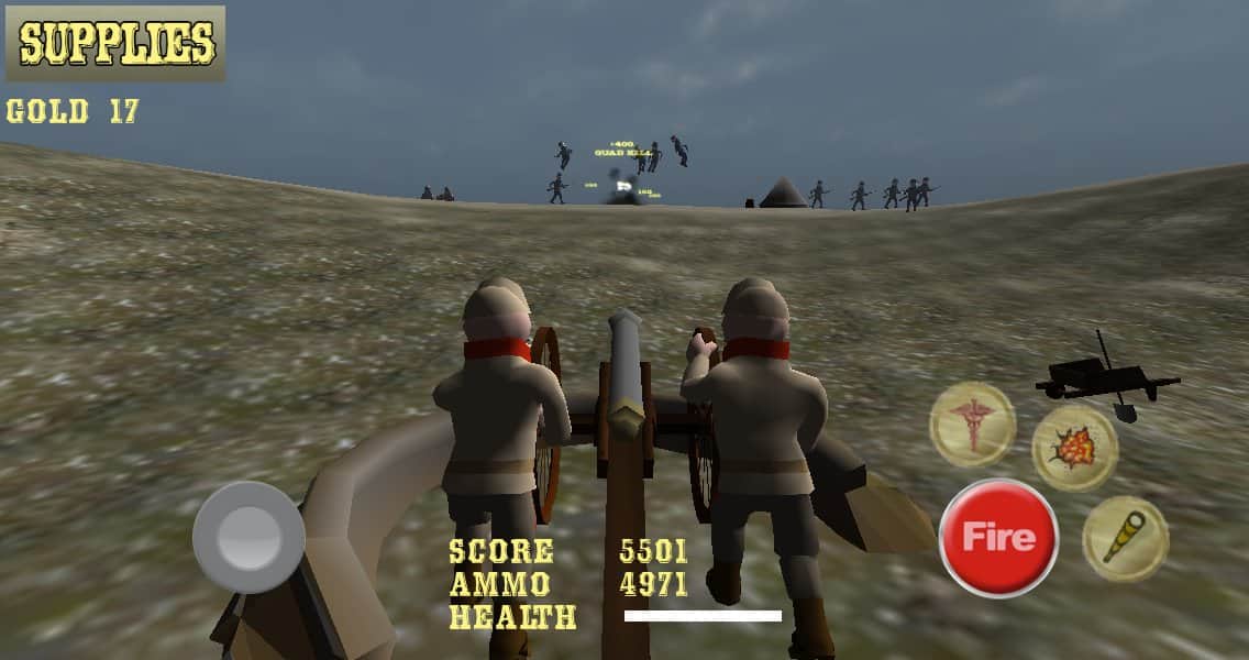 Gettysburg Cannon Battle USA - экшен для андроид перенесет вас на оборонительный пост с пушкой. Вы на заставе и ваша задача - отстреливаться от врага. В игре отличная графика и эффекты. Кроме самой стрельбы вы сможете апгрейдить пушки, приобретать аптечки и минометы и прочие полезные предметы. Все это вам понадобится против самого разного врага - кавалерия, лодки, солдаты и другие пушки. Также вас ждет и несколько локаций - от шахт до гавани. Ну и прежде всего, вы должны будете определиться со стороной, за которую воюете - будь-то Конфедерация или Союз.