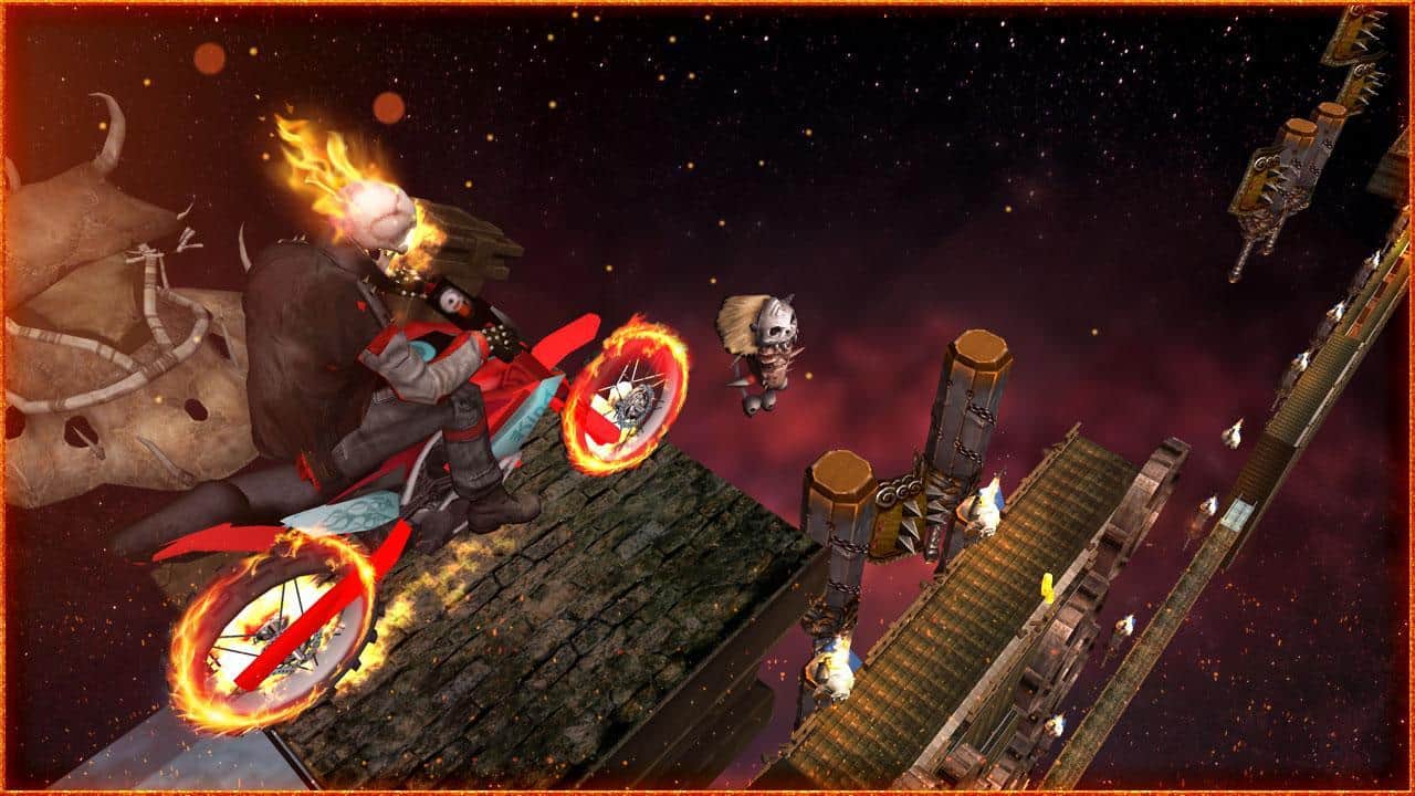 Ghost Ride 3D Season 3 - продолжение серии горизонтальных гонок в основу которых лег популярный комикс про призрачного гонщика. И так, в триквеле вам все так же предстоит путешествовать по мрачным адским подземельям, при этом уничтожая различных чудовищ и совершая замысловатые трюки. Ghost Ride 3D Season 3 при сохранении оригинального геймплея обзавелась еще лучшей графикой, звуковым сопровождением и потрясающей анимацией.