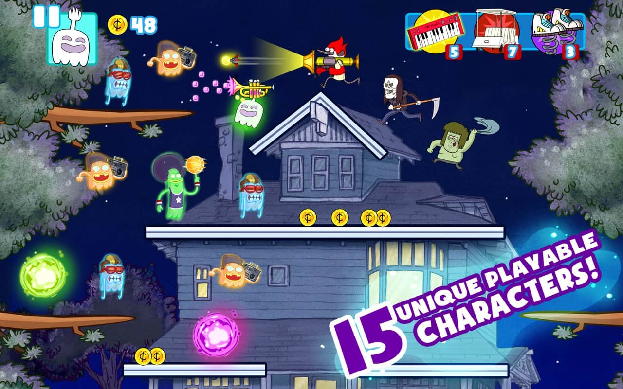Ghost Toasters - Regular Show - игра на андроид, в которой вам предстоит защищать парк от вторжения в него призраков. А для этого вам в помощь будет большой выбор оружия и защитных костюмов с разными способностями.