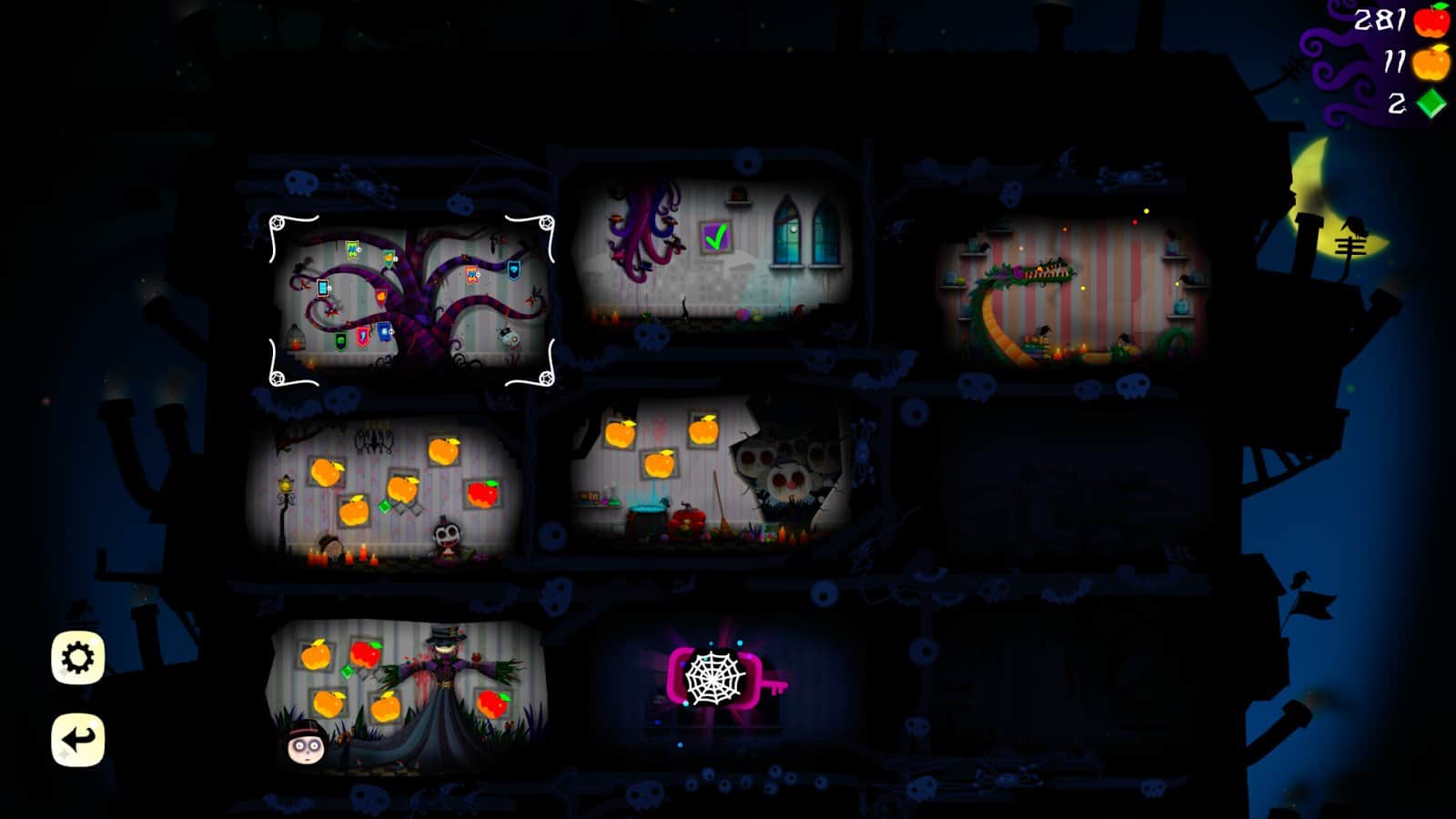 Ghosts and Apples Mobile - Самым необычным способом вы попали в дом, наполненный страхом от чудищ, которые там обитают. Вам придется полностью пройти все испытания, чтобы выйти наружу, или же умереть. Сразитесь с большим количеством врагов и попытайтесь при этом сильно не пострадать, так как вас ждет длинный путь. Вы увидите максимально странные вещи: спящих вампиров, меняя свою форму осьминогов, жутких призраков, воронов варящих зелья, живые картины и прочее. Собирайте драгоценные камни и золотые яблоки, за них можно приобрести ключи от каждой комнаты.