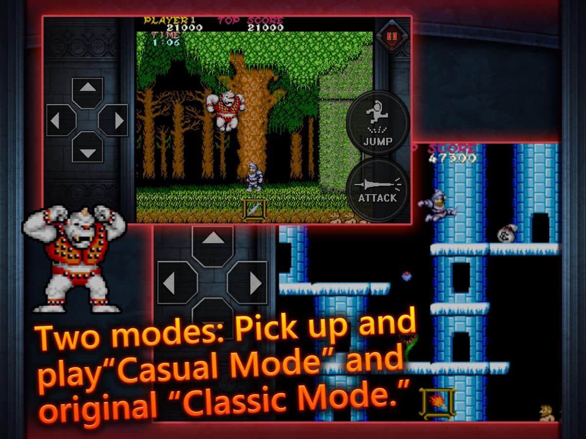 Ghosts'n Goblins MOBILE – хардкорный платформер для IOS, где вы отправитесь во времена рыцарей. В этой игре вы будете играть роль отважного рыцаря, которому выпала непростая учесть спасти из лам монстров принцессу Прин Прин. Путешествуйте по опасному миру полному монстров, злодеев и демонов и побеждайте их используя для этого свой меч. Вступайте в бой с врагами и по пути собирайте разнообразное оружие и снаряжение, которое поможет вам двигаться дальше и сразиться с главным демоном. В игре представлено два уровня сложности выбирайте тот, который подходит вам и начинайте игру. Пройдите все испытания игры и насладитесь захватывающими действиями и динамичным игровым процессом.