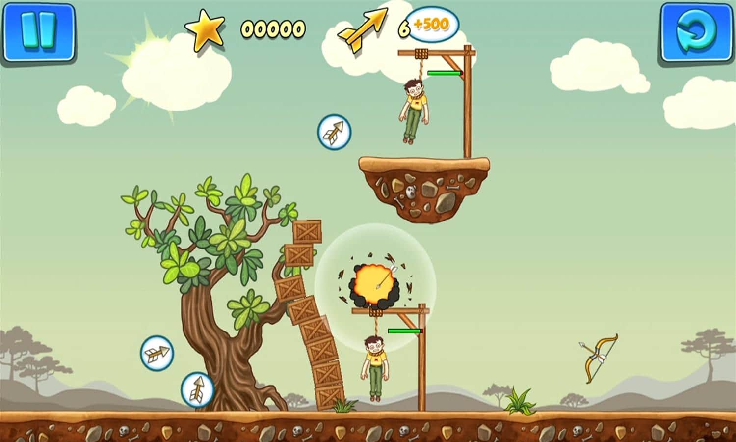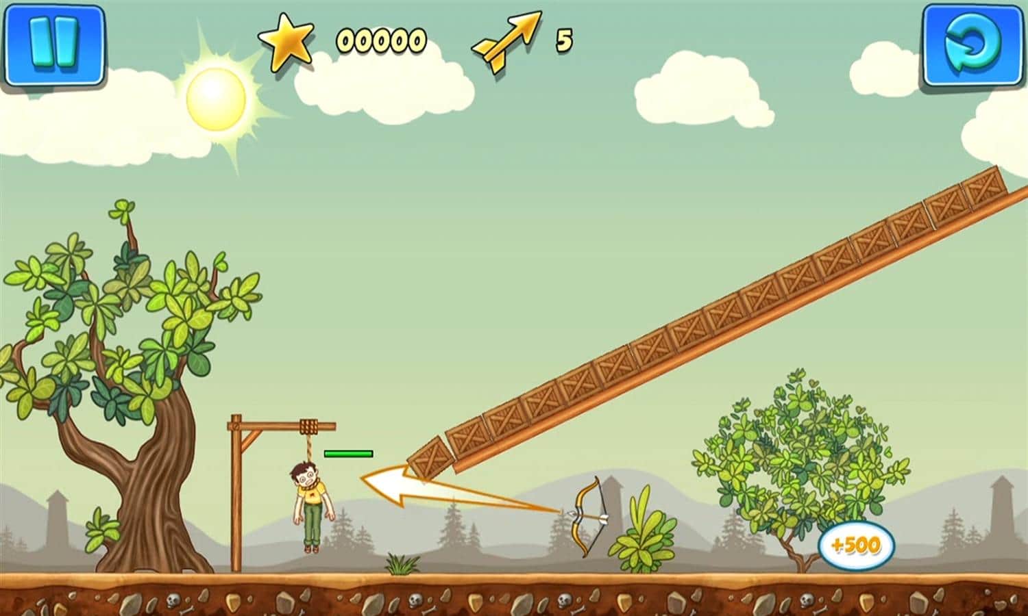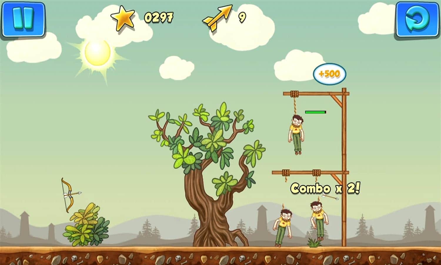 Gibbets 2 - веселая головоломка, в которой вы будет спасать людей весящих на виселице с помощью стрел. Стреляйте из лука по веревкам и не дайте людям, весящим на них, испустить последнее дыхание. Стреляйте точнее, чтобы не попасть по весящим, а также используйте порталы и бонусы чтобы помочь несчастным. Пройдите все 50 уровней и заработайте максимальное количество очков для того чтобы посоревноваться с друзьями.