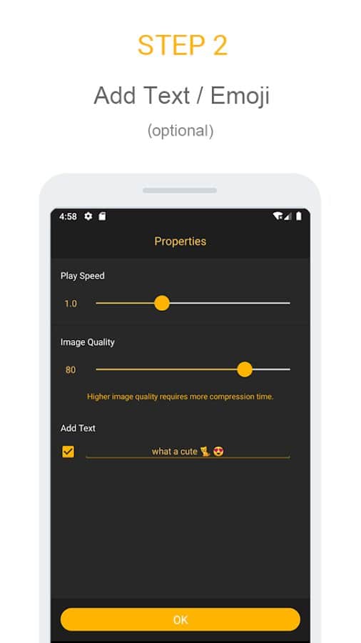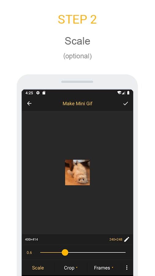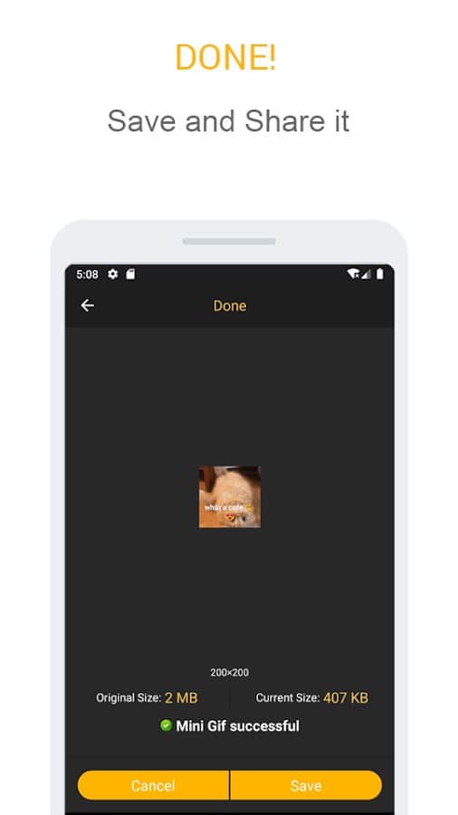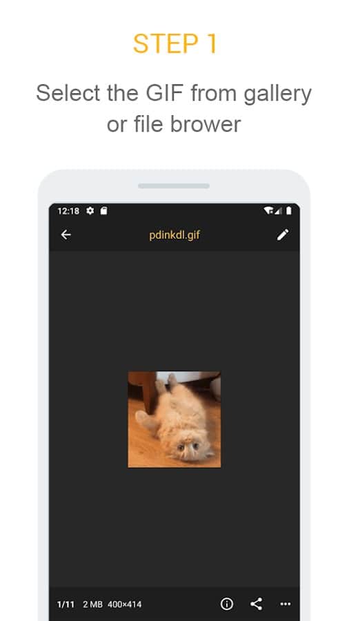 При помощи приложения Gif mini вы за считанные секунды сможете сжать, обрезать и просмотреть получившееся GIF изображение из исходника. После съемки забавного Gif вам будет доступно большое количество функций, в том числе и возможность поделиться им со своими друзьями в мессенджерах и любых социальных сетях. Создавайте свои мини гифки, пользуйтесь настраиваемыми параметрами программы, уменьшайте в 2 и более раз, обрезайте всего одним нажатием по экрану, редактируйте картинку как вам необходимо, удивляйте ей своих близких, создавая хорошее настроение на целый день.