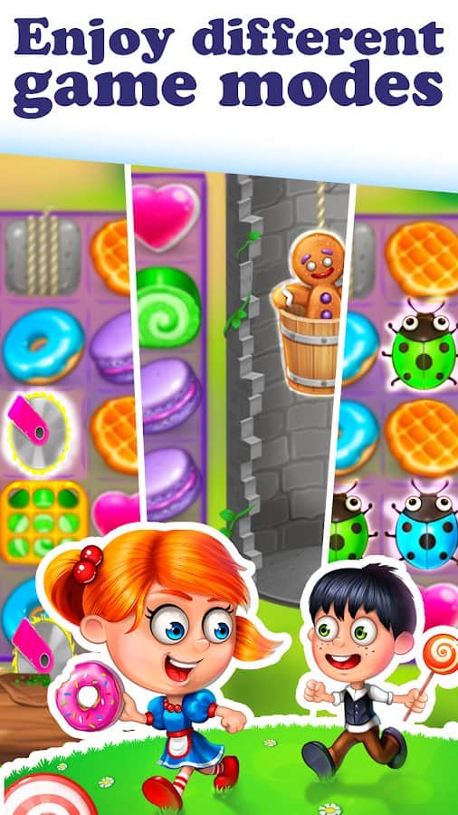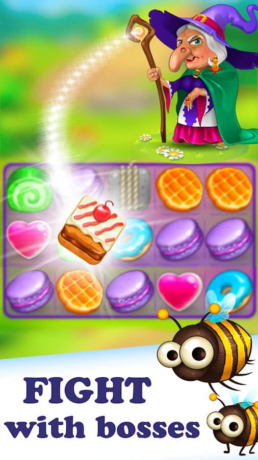 Gingy Story: match 3 – увлекательная игра из жанра три в ряд на андроид, где вы будете складывать ряды из конфет, пончиков и других сладостей. В игре вы будете помогать Лизе и ее пряничному другу отыскать Томми и победить злую ведьму. Составляйте ряды из трех и более объектов и проходите сложные испытания игры. Применяйте многочисленные бонусы и усиления и как можно быстрее проходите уровни. Составляйте как можно длиннее ряды из сладостей и проделывайте комбо удары. Вступайте в бой с сильными боссами и побеждайте опасных врагов.