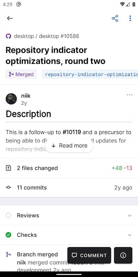 Комментарии к GitHub на Android