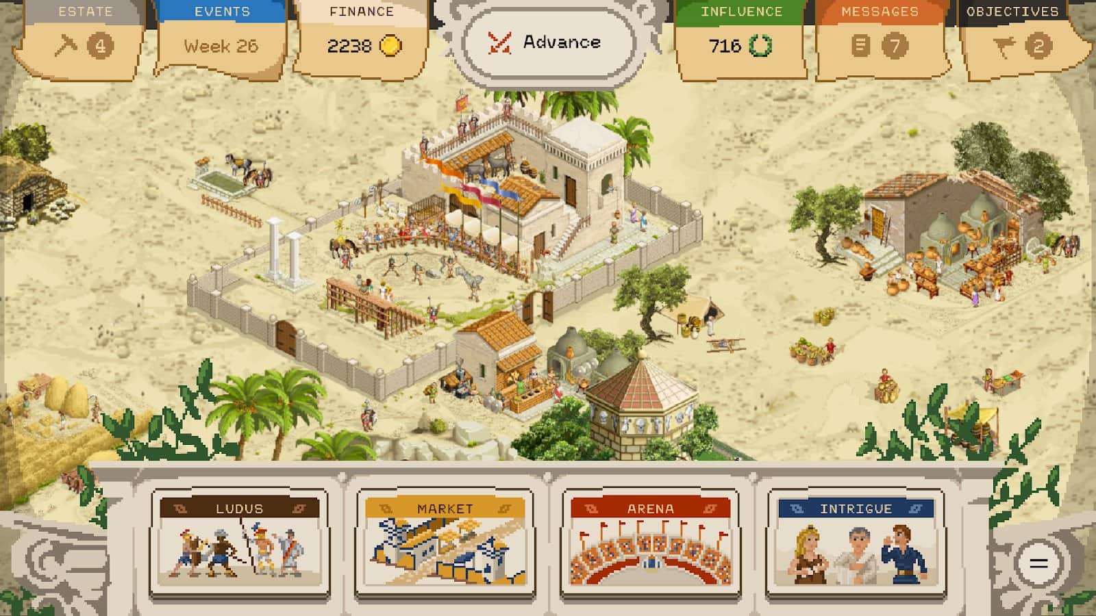Интересная игра. Качаешь гладиаторов, делаешь их рабами, если не устраивают. Зарабатываешь деньги, подкупаешь, убиваешь. В общем, идëт нормальная цивилизованная жизнь.