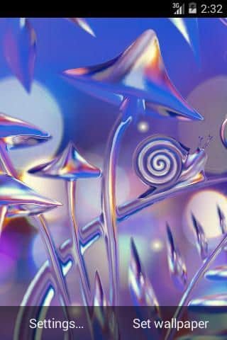 Glass Flowers Live Wallpaper – красивые живые обои на андроид телефоны или планшеты где вы сможете наблюдать стеклянные цветы. Стеклянная композиция состоит из цветов, листьев, улиток и грибов сквозь которые проходят лучи различных цветов, отражаясь и преломляя свет. Сотни разноцветных бликов играют на стеклянной панораме, и будут радовать вас на протяжении долгого времени. Эти обои за счет своей неповторимой графики не надоедят вас и подойдут как для маленьких экранов телефонов, так и для широкоформатных планшетов. Выбирайте из пяти различных тем и цветов понравившуюся вам, а также меняйте стеклянную композицию.