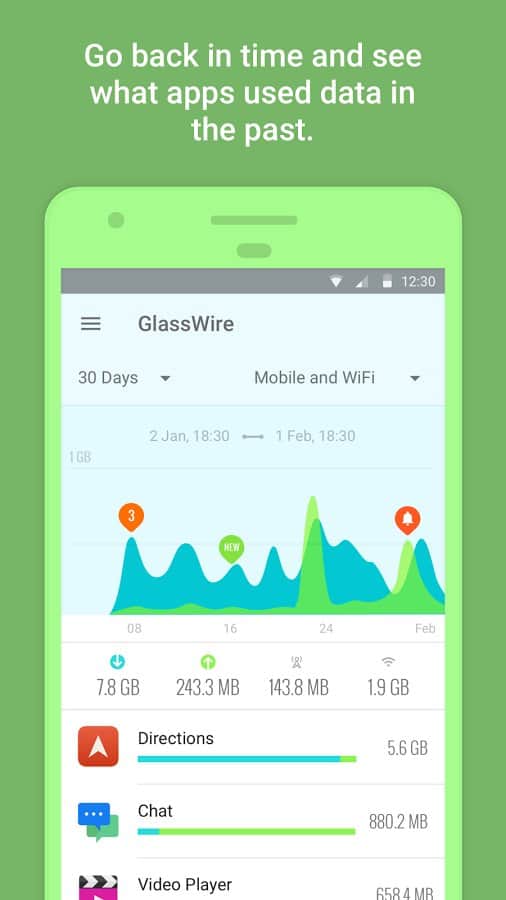 GlassWire – Data Usage Privacy - Далеко не каждый человек имеет безлимитный интернет, и что же делать если вы стали одним из них? Все очень просто, вам лишь нужно контролировать свой трафик, а сделать это поможет данное приложение. Оно не только покажет скорость вашего интернет соединения, но так же соберет всю информацию о входящем и исходящем трафике. К тому же оно поделит её на различные части и разделит по приложениям что потребляют ваш трафик.
