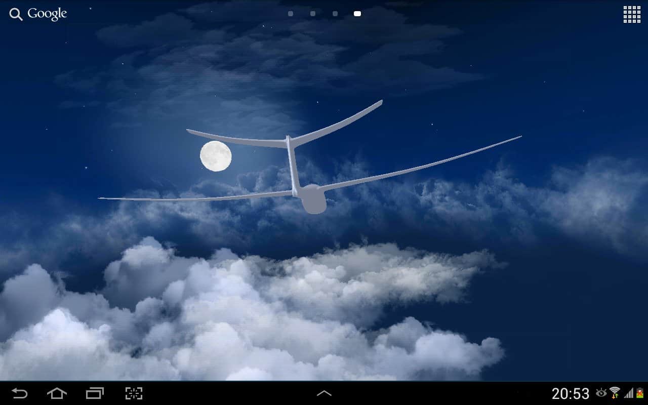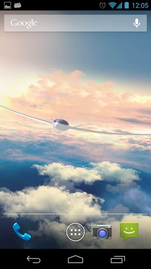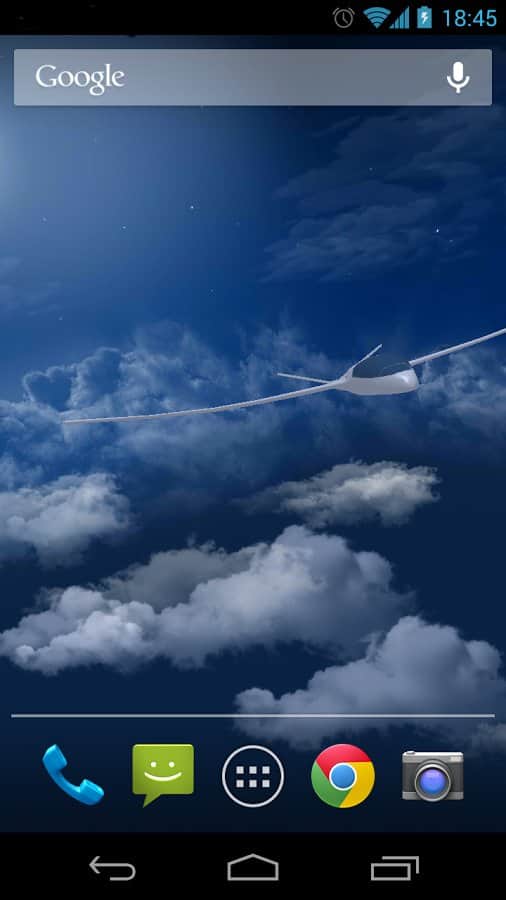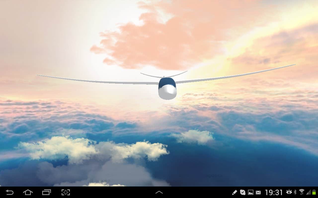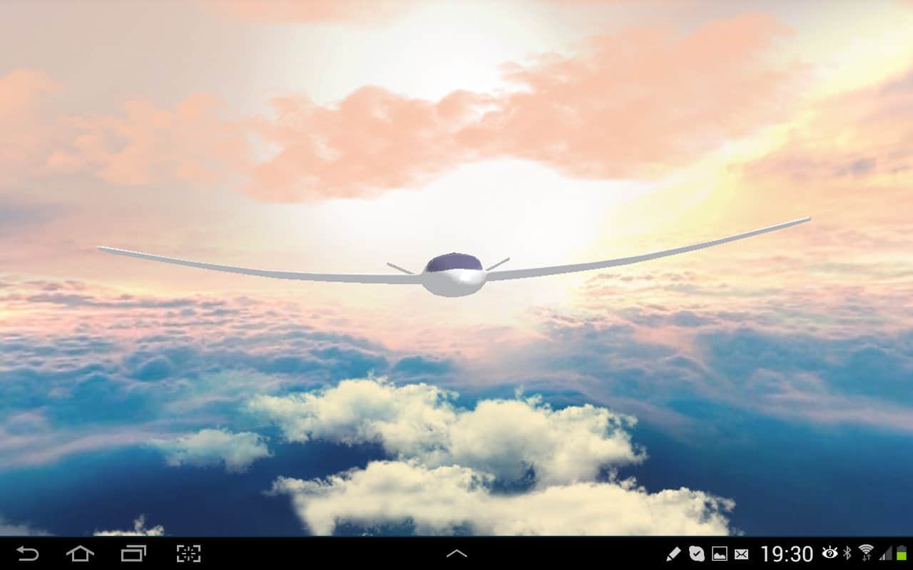 Gliders in the sky LWP 3D – красивые живые обои для андроид от разработчика SkyDivers, представляющие собой летящий над облаками планер, вид которого можно установить по своему желанию. Так же можно установить скорость движения, облака (их качество), угол наклона камеры и многое другое.