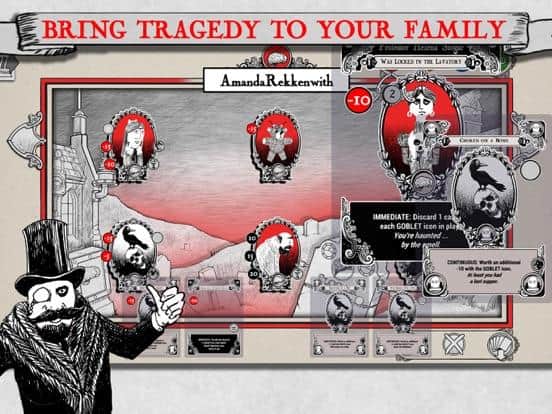 Gloom: Digital Edition - Если в других играх вы можете играть за позитивных героев, делать добро и проходить различные испытания для освобождения знакомых или родственников, то здесь все происходит абсолютно наоборот! Вашей главной целью является сделать как можно несчастнее собственную семью, тем самым принести счастье другим семьям. Старайтесь отдать позитивные карты противникам как можно быстрее, иначе времени может не остаться! Разыгрывайте любые карты событий, чтобы иногда пропускать свои ходы, отменять их, воскрешать кого-то и делать прочие вещи.