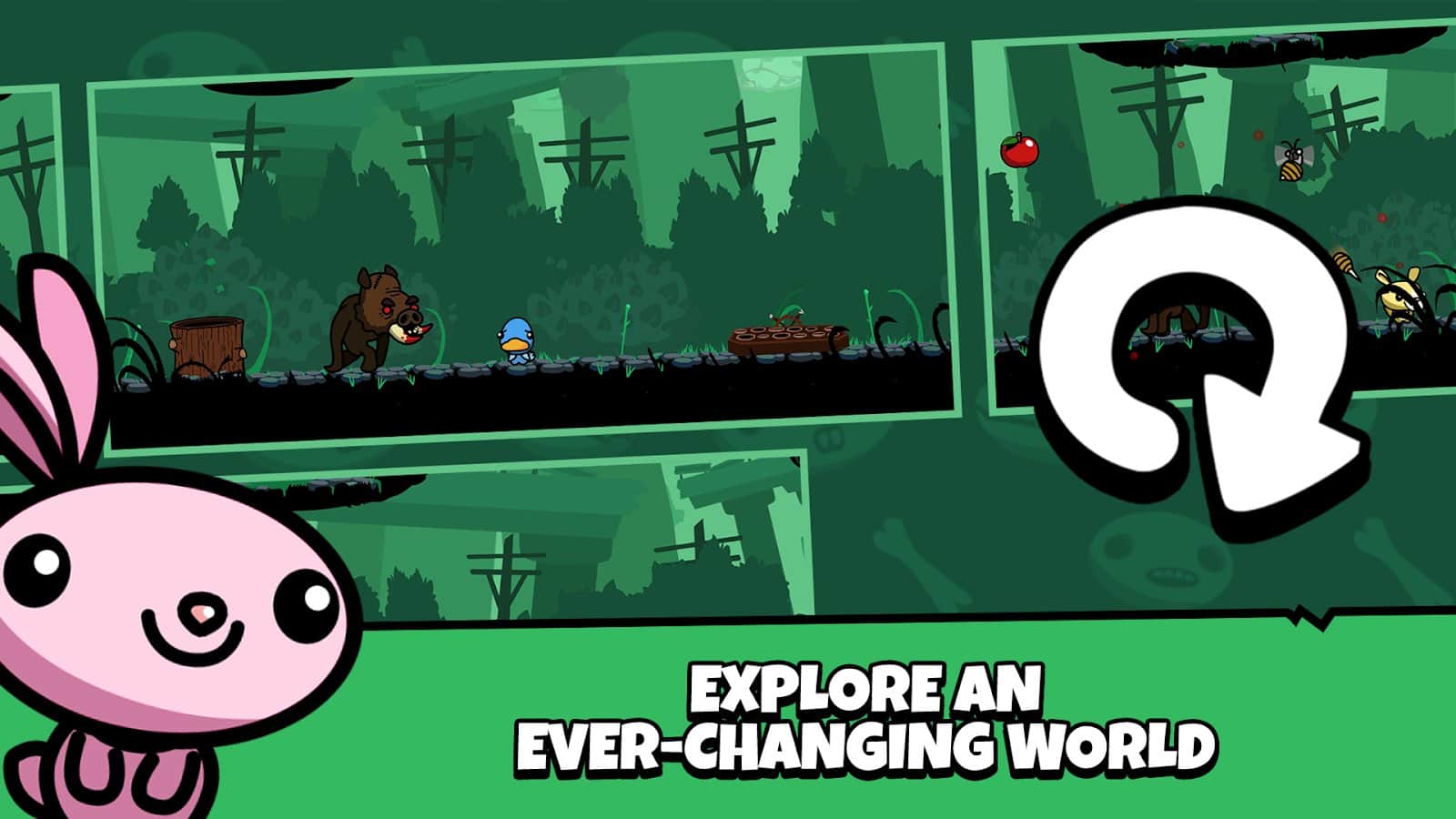 Помогите щенкам найти друзей и обнаружить безопасное место в испорченном мире с существами-мутантами! Собирайте фрукты, проходите паркур и ловушки, находите бомбы, кидайтесь ними, убивайте монстров или не попадайтесь у них на виду, найдите ключ и откройте дверь. Коллекционируйте разных малышей: зайчик, лягушка, лиса, птичка, коала, хомяк и множество других. Чтобы передвигаться - нажимайте много раз на кнопку вверх, от чего будете прыгать. Попыток пройти уровень всего 3, будьте аккуратны и старайтесь не умирать.