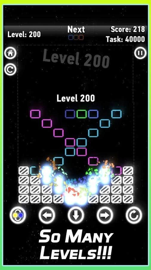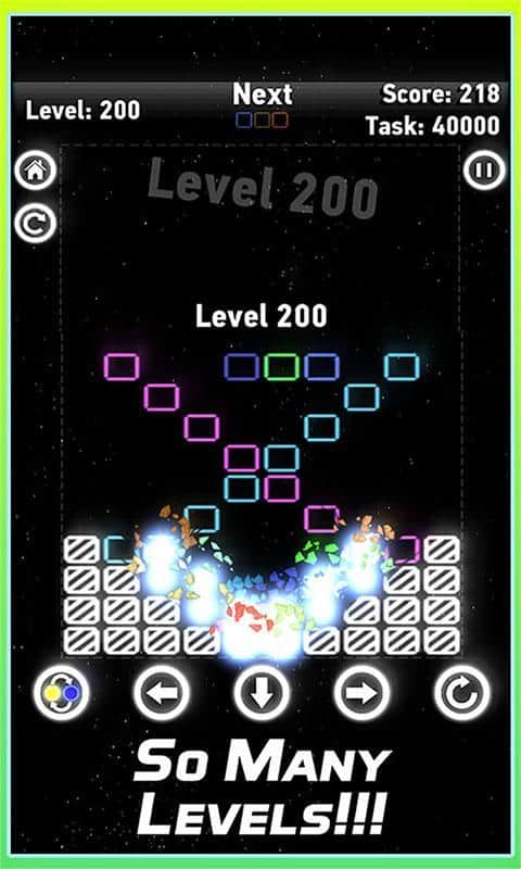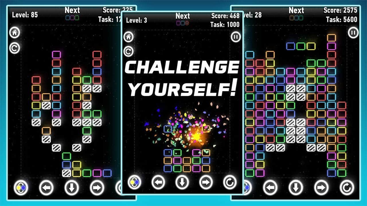 Glow Block – Neon Blocks Game - Эта игра является одной из новых игр - головоломок. Её целью является собрать 3 блока в строке или столбце одного цвета, чтобы взорвать их. Если строка достигает вершины, прежде чем вы собрали необходимое количество очков, то вы проиграли. Это очень просто! Главными особенностями этой игры является: 200 светящихся уровней, простые правила игры и удобное управление, великолепная анимация, забавные звуковые эффекты. Потренируйте свой мозг и развивайте навыки последовательным мышлением.