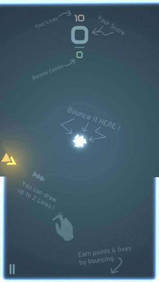 Glowry Bounce - простейшая игра для отдыха разумом и телом. У вас есть ограниченное количество жизней, и возможность всего два раза нарисовать две линии в одном уровне. Эти линии будут служить стеной для вашего шарика. Мяч активируется когда вы нарисуете свою первую линию, задача простая, просто попадите мячом в цель по центру вашего экрана и перейдите на следующий уровень. Если вам недостаточно одной линии, нарисуйте вторую, но ни в коем случае не позвольте ему ускользнуть за пределы рамок, иначе вы потеряете одну жизнь. Покажите на что вы способны и добейтесь лучшего результата, не потеряв все жизни!