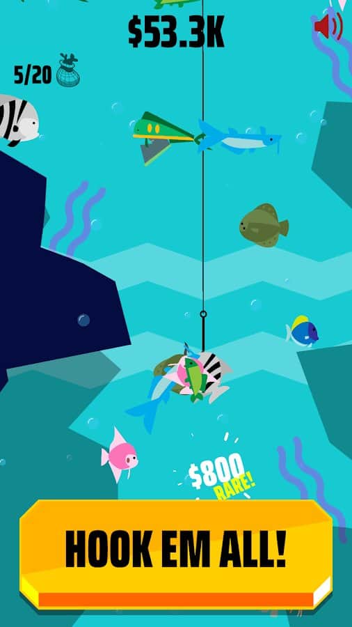 Go Fish! – увлекательная аркада на андроид, где вы будете управлять рыбаком, который хочет заработать как можно больше денег. В этой игре вашей главной задачей будет помогать старику, забрасывать удочку в воду и вытаскивать как можно больше рыбы. Зарабатывайте монетки и улучшайте свои удочки и снасти, что позволит вам увеличить свой улов и добраться до самых глубин где водятся редкие рыбы. Играйте в эту игру в любое свободное время и наслаждайтесь увлекательным игровым процессом, забрасывая удочку в воду и вытаскивая рыбу. Старый рыбак будут зарабатывать деньги, вытаскивая рыбу из моря, даже когда вас не будет.