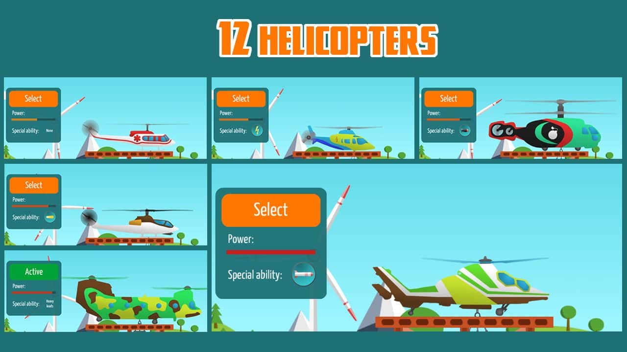 Go Helicopter (Helicopters) – увлекательная игра на андроид, где вы будете выступать в роли пилота вертолета. В этой игре вашей главной задачей будет летать на небольшой высоте и выполнять все миссии и задачи помогая автомобилям, суднам и поездам следовать дальше. На вашем пути встанет большое количество различных проблем, которые вы должны решать и двигаться дальше. Всего в этой игре представлено 12 различных автомобилей, которые обладают различными свойствами и умениями. Пройдите более 100 уровней игры и посетите 8 различных мест таких как пустыня, море, горы и пляж. Пройдите все испытания игры и решите все головоломки с мостами, подъемниками, лифтами, взрывающимися элементами, стенами и тяжелыми грузами.