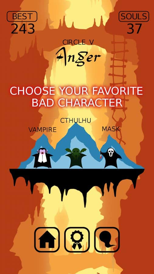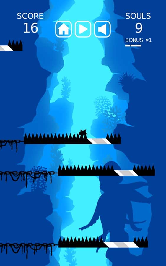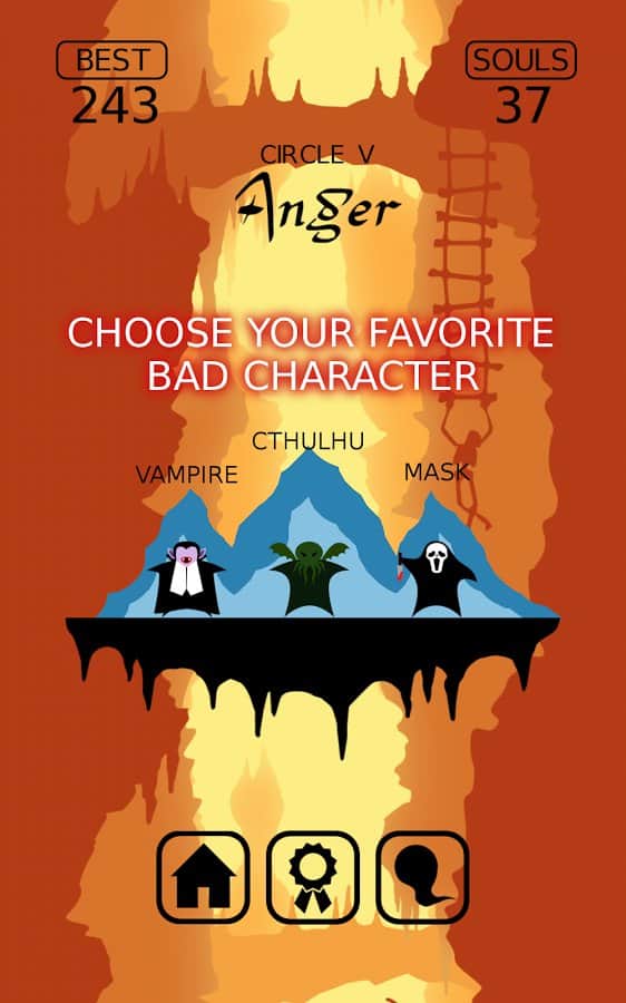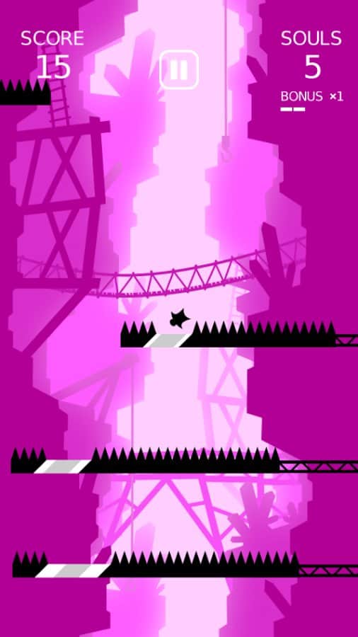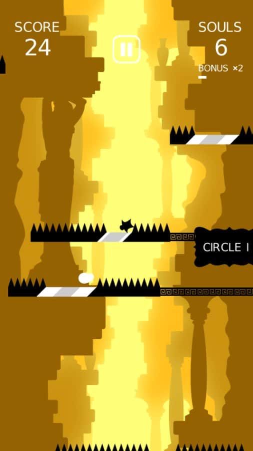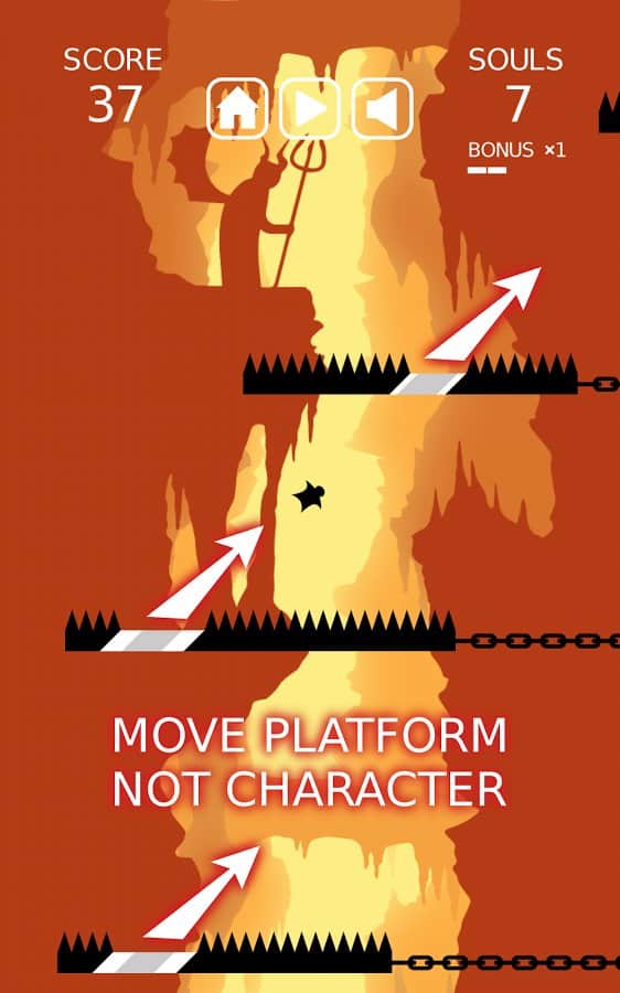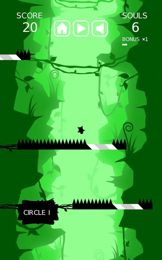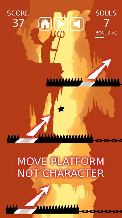Go to Hell – ваш герой падает в бесконечную пустоту. Но и тут ему не дают покоя. Платформу с шипами мешают его падению, но в каждой такой платформе есть безопасный участок через который наш герой может пролететь и при этом не получить абсолютно ни каких травм. Для этого в нужный момент вам необходимо просто запустить в движение платформу, таким образом, что когда наш герой к ней приблизится, будет уже свободное место для её беспрепятственного пролёта дальше. Если вы попадёте на шипы – игра закончится. Устанавливайте новые рекорды и разблокируйте других персонажей игры.