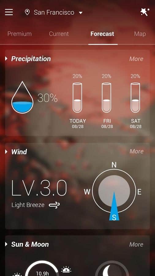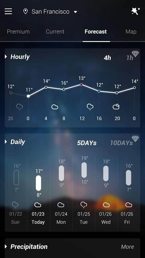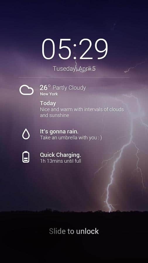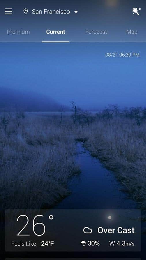 GO Weather EX – отличный анимированный виджт погоды для андроид от разработчиков GO Launcher EX. Очень точный прогноз погоды больше 10 тысяч городов и мест по всему миру. Узнать погоду можно как на ближайшие сутки, так и на 5 дней вперед. Будьте в курсе погодных условий за окном!