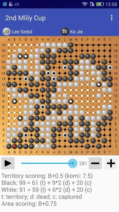 Go4Go – настольная игра на андроид, широко распространенная в Китае, Японии и Кореи. Эта игра была изобретена более 2500 лет назад и в наши дни в нее играют жители Запада. Теперь и вы можете проверить свои силы и навыки стратега в этой игре. Главной целью этой игры является то, что вам необходимо окружить фишки соперника своими и занять как можно большую территорию. Размещайте свои фишки на игровом поле и не дайте сопернику обхитрить вас. Добивайтесь отличных результатов и поднимайтесь на самый верх таблицы лидеров и достижений. Также эта игра порадует вас дополнительными функциями, которые не доступны в обычной игре.