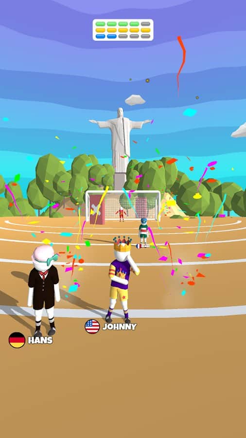 Goal Party – увлекательная спортивная игра на андроид, где вы будете забивать голы в ворота противника. Возьмите под свой контроль футболиста и забивайте голы стараясь обходить вратаря и многочисленные преграды на пути. С каждым забитым голом вы будете все дальше отдалятся от ворот показывая на деле свои навыки точных и метких ударов. Путешествуйте по различным городам и везде устанавливайте свои рекорды стараясь опередить соперников. Станьте лидером в этой игре и открывайте для себя новых футболистов.