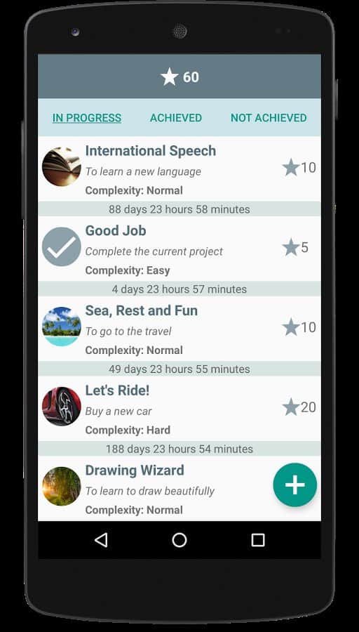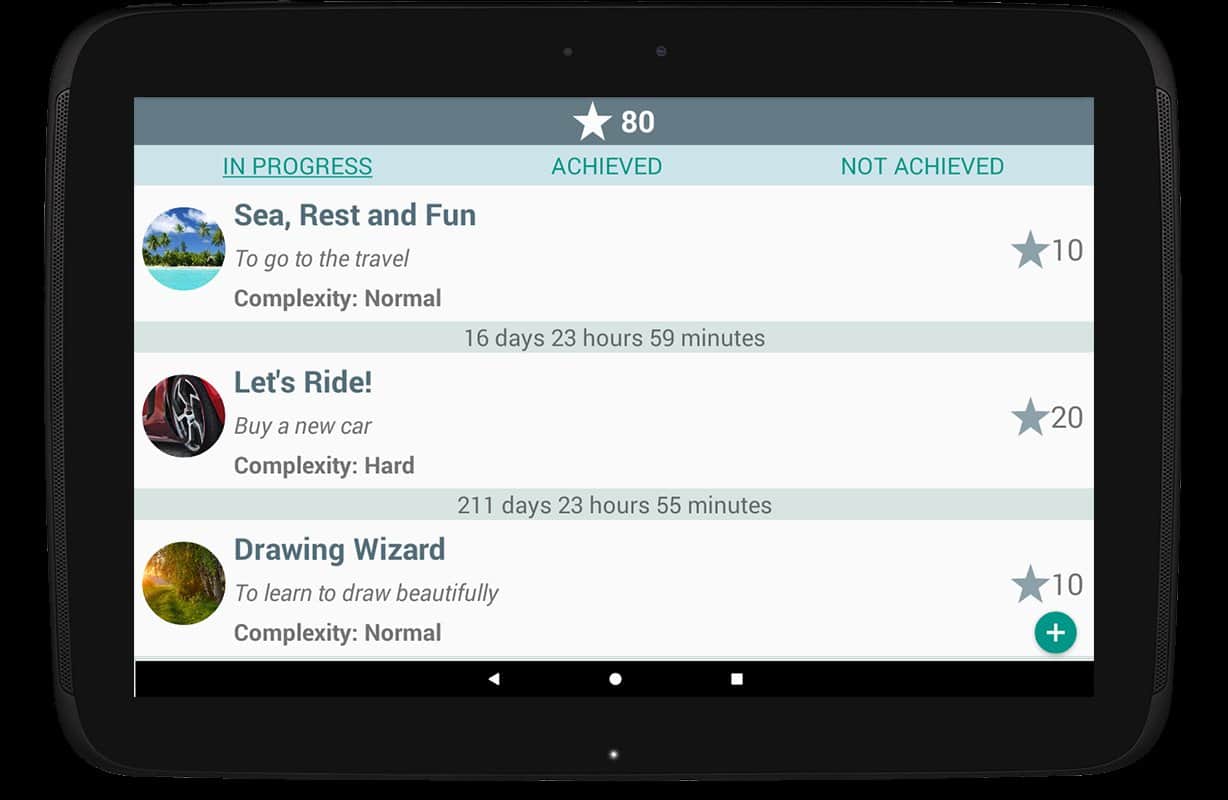GoalFin - Менеджер целей поможет вам поставить конкретную цель со сроками её выполнения и степенью сложности. Мотивируя пользователя к достижению каждой планируемой задачи, программа даёт ему вознаграждения в виде накапливаемых баллов. Самое большое количество очков даётся за выполнение цели высокой сложности. Хорошим достигнутым результатом можно поделиться со своими друзьями и рассказать им о прогрессе. Приложение GoalFin позволит вам не только развиваться, но и быть уверенным в себе и целенаправленно добиваться успеха.