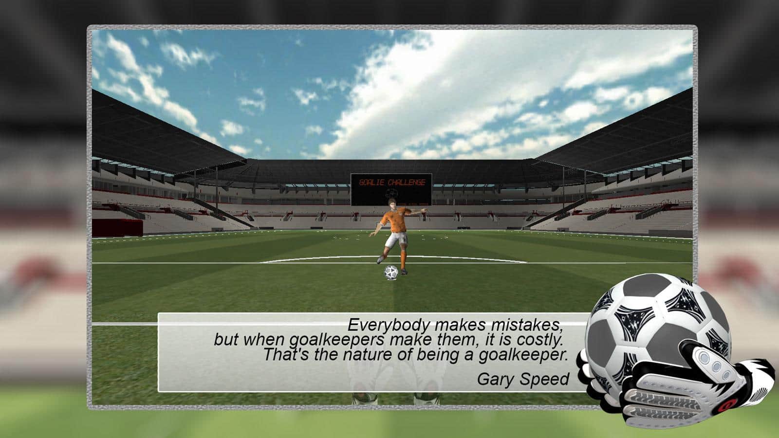 Goalie Challenge - играйте в футбол, теперь и в роли того от которого на прямую зависит судьба матча. Отличный шанс попробовать себя в роли профессионального вратаря. Отбивай как можно больше мячей и постарайся не пропустить гол в свои ворота. Стань лучшим голкипером и возглавь таблицу лидеров.
