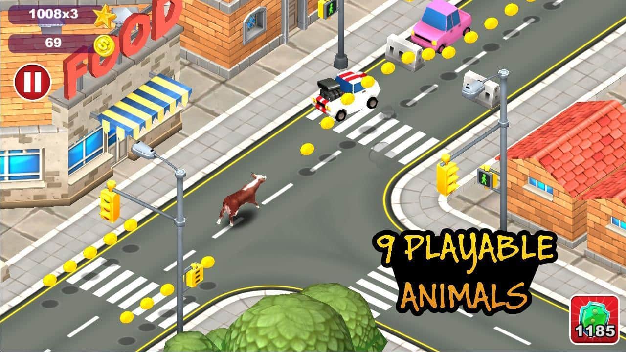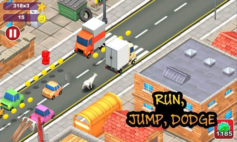 Goat Insanity: Run– веселый раннер где вы будете управлять бегающим по городским улицам козлом. Бегайте по оживленным улицам, преодолевайте препятствия в виде машин, домов и людей и собирайте нужные вам монетки на своем пути. Игра порадует вас сменой дня и ночи, отличными бонусами, а также возможностью смены животного.