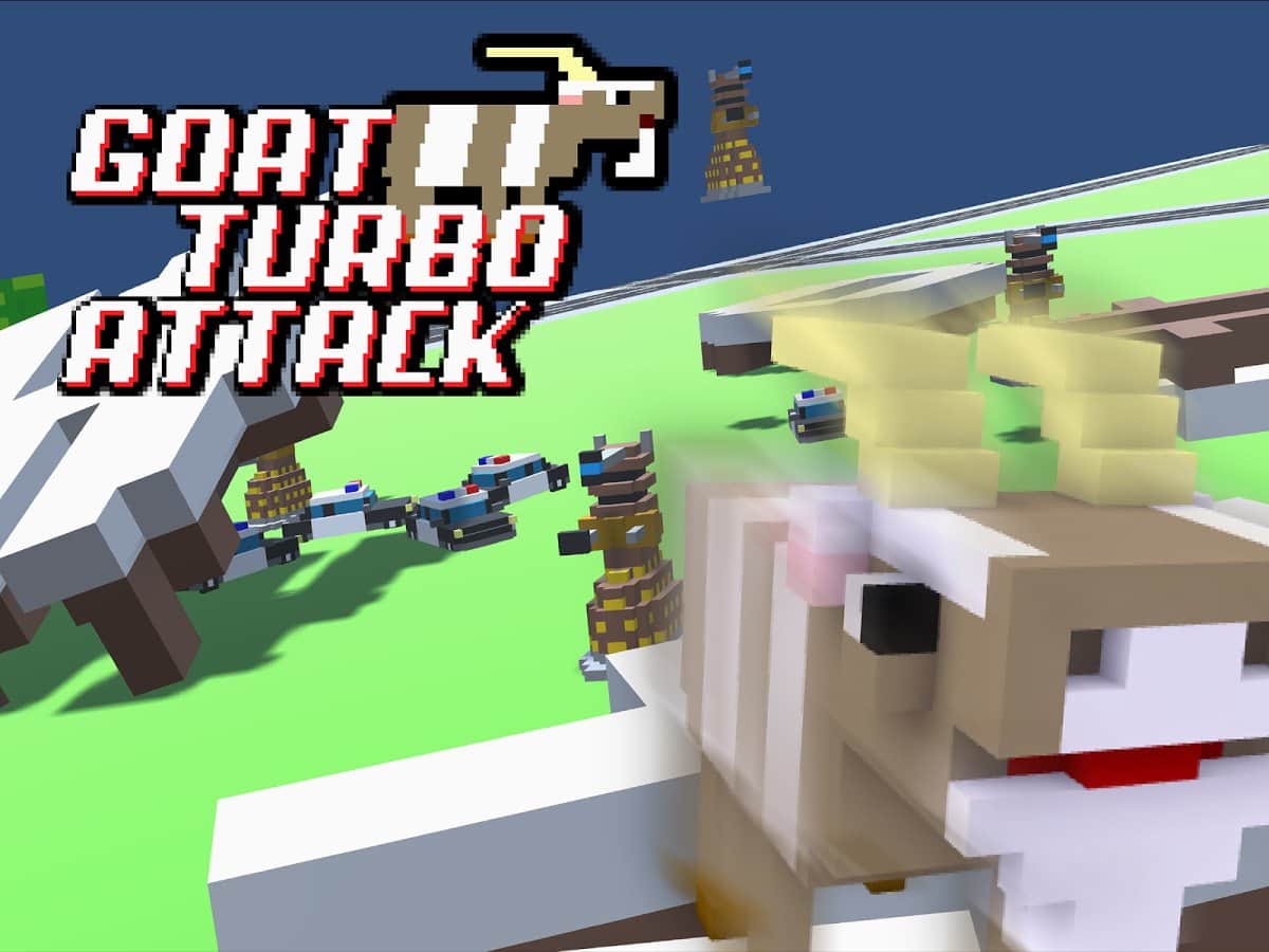 Goat Turbo Attack (GTA) – игра на андроид, сделанная в блочной графике, где вы возьмете под свой контроль козла, который бегает по улицам города и крушит все вокруг. Управляйте главным героем этой игры – козлом и уничтожайте все на своем пути различные здания, машины, фонарные столбы и многое другое. Врезайтесь небольшими рогами в преграды и тараньте их. Пытайтесь убежать от преследующих вас полицейских, монстров, зомби и даже боевых роботов которые будут следовать за вами по пятам. Пытайтесь уйти от погони и не взорвитесь на расставленных повсюду бомбах. По ходу игры набирайте очки и получайте доступ к новым необычным персонажам, которых в игре представлено 18.