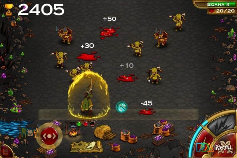 Goblins Raid - одна из тех игр что явно не претендуют на звание шедевра, но при этом обладают захватывающим геймплеем и вполне способны затянуть игрока на долгие часы. Секрет игры в том что разработчики умело объединили несколько жанров, здесь и элементы товер дефенс, и РПГ, и аркады. Сюжет игры отправит нас в фэнтезийный мир, вам же предстоит играть в роли отважного война, который по решению старейшин племени был отправлен на поиски редкого артефакта, которым владели гоблины. Когда цель миссии была достигнута и казалось бы все хорошо вас настигли зеленые монстрики и вам не осталось ничего кроме как защищаться, отстреливая орды нападающих. На выбор у вас будет несколько персонажей, каждый из которых потребует индивидуального подхода, к тому же вы сможете развить героя по своему усмотрению.