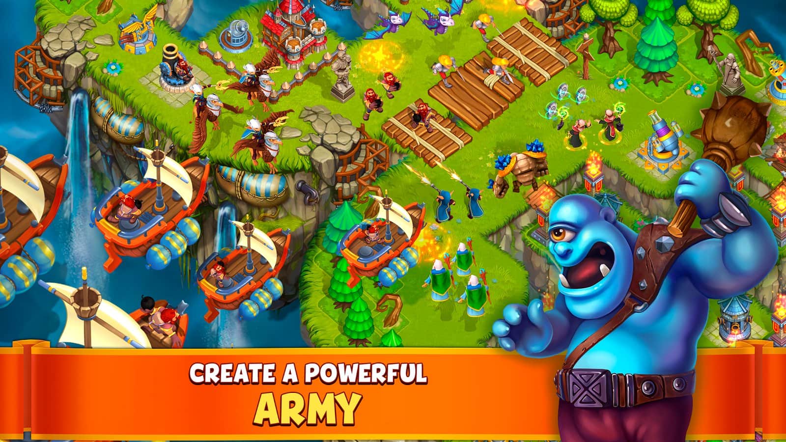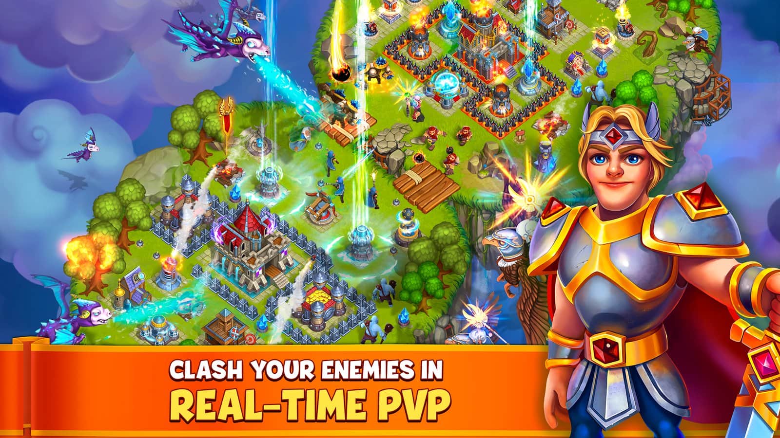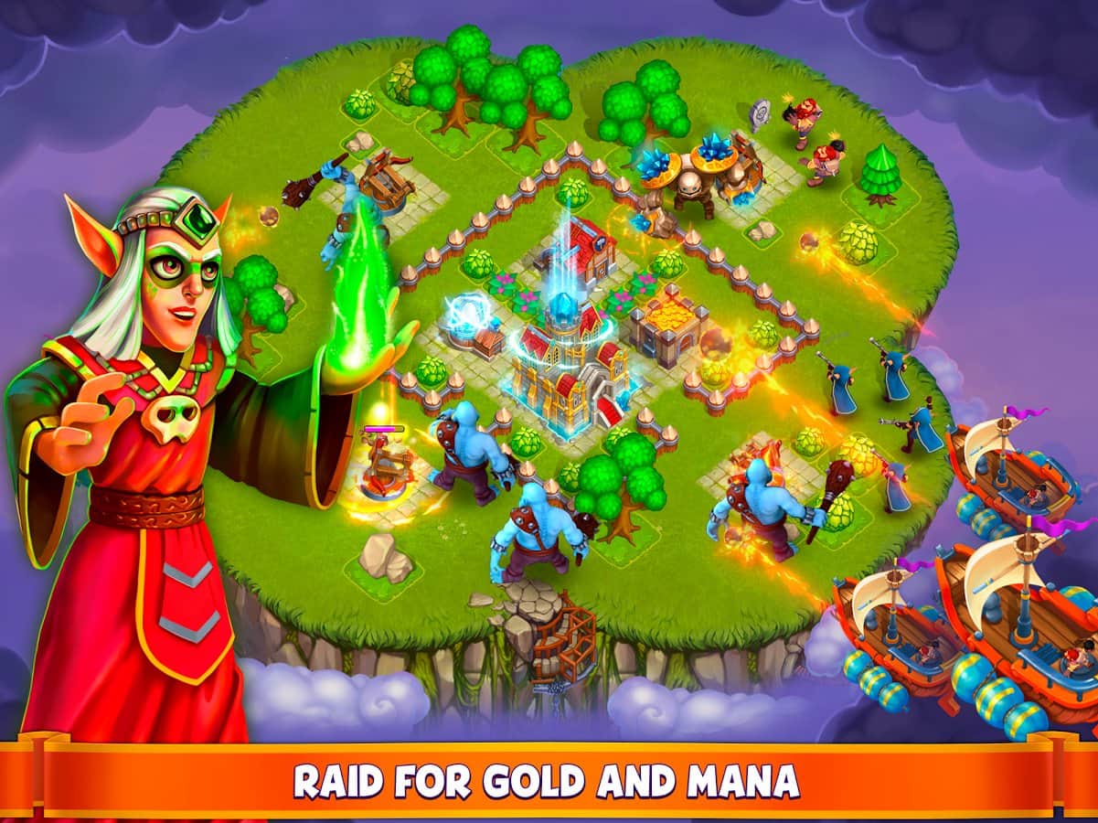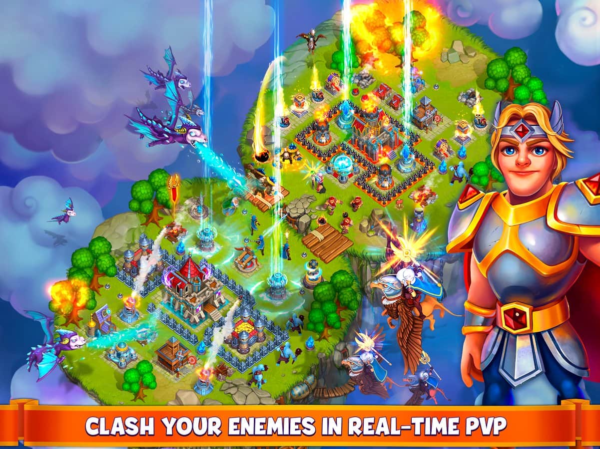 Gods of the Skies – стратегия на андроид, где вы будете путешествовать по летающим островам. В этой игре вы откроете для себя мир летающих островов где вы будете выступать в роли полководца, которому необходимо собрать свою армию и дать отпор силам зла. Впереди вас ждет встреча с многочисленными героями, которые станут вам либо друзьями или врагами. Выполняйте поставленные миссии и задания и исследуйте острова, ища ресурсы и сокровища. Развивайте свои острова и завоевывайте новые, стройте здания и различные постройки и защищайтесь от армии врагов. Соберите свою непобедимую армию из легендарных воинов и сажайтесь с другими игроками.