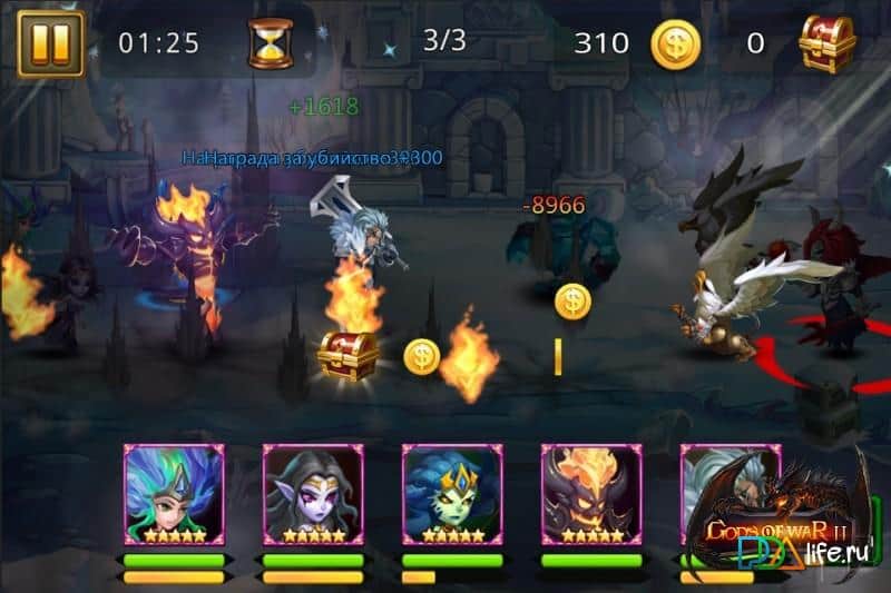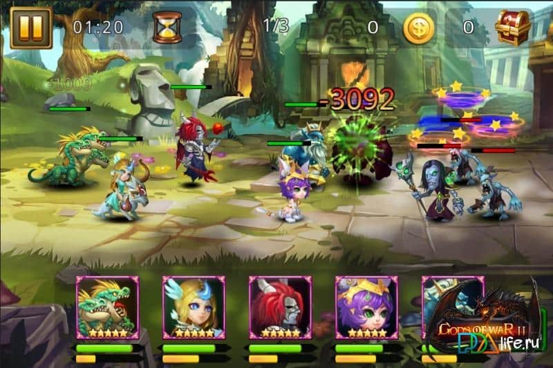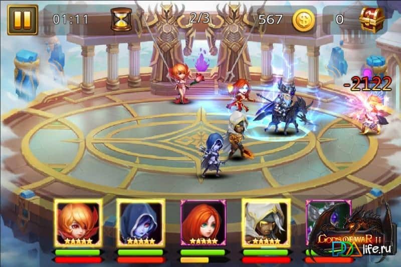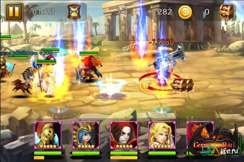 Gods Of War 2 - это увлекательная карточная экшен игра, с героями и историями заимственными из мифологии различных стран. Система героев представлена в виде фэнтези - карт, с удобными управлениями навыков и кастов. Герои свободно группируются, а команды игроков могут использовать сотни героев, принимая участие в тысячи боях. Сама игра включает множество локаций, представляя нам интересные задания различных уровней сложности. В игре присутствует как мультиплеерный режим, так и одиночные бои, включающие в себя выполнение различных миссий и прохождение квестов.