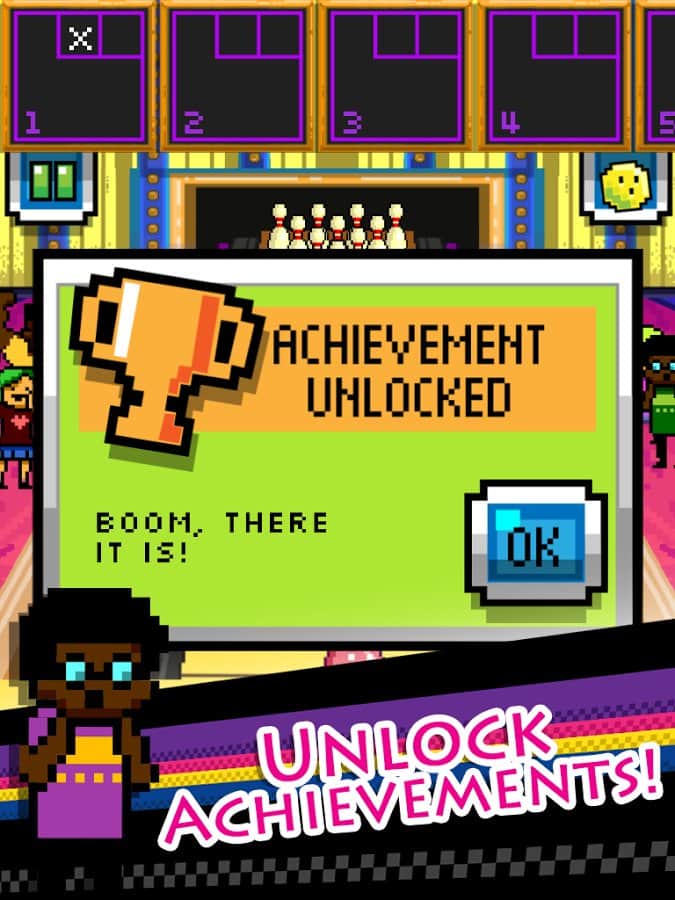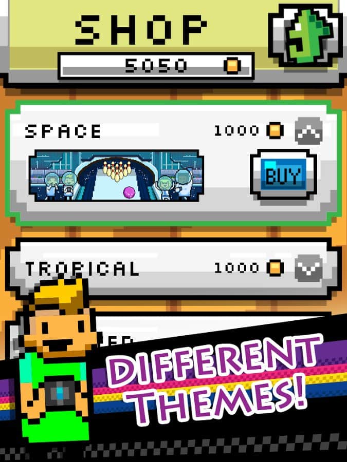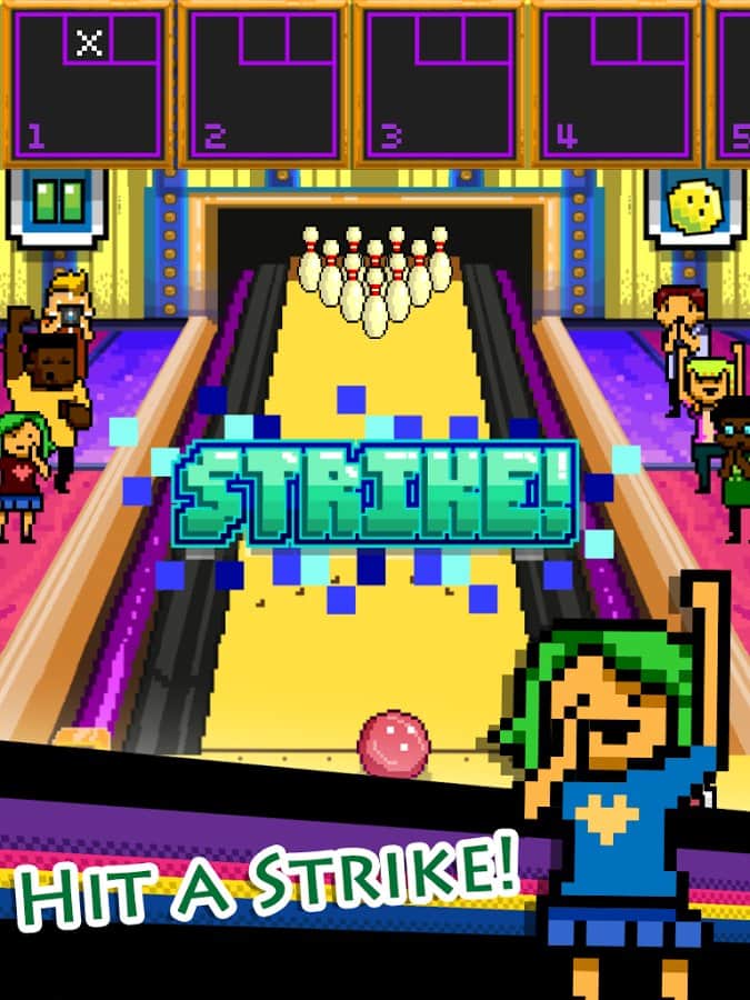 GOGO Bowling – боулинг сделанный в пиксельном стиле на андроид, с отличной физикой движения шара. Если вы любите боулинг то вам сюда, веселая игра в которой вы будете забивать шары, а фанаты в то время приветствовать вас. В игре присутствуют два режима, классический и мультиплеер, а также 5 мини-игр в которые вы сможете поиграть в любое свободное время. Играйте и попробуйте забить как можно больше кегль и заработать максимальные балы для того чтобы посоревноваться с самыми сильными в этой игре. Игра также порадует вас 6 дополнительными тематиками: сельское хозяйство, космос, тропический лес, привидения, средневековье и диско, играйте и получайте удовольствие.
