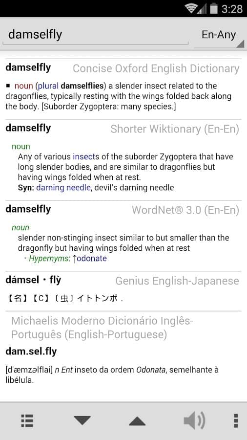 GoldenDict - Быстро посмотрите перевод и полное значение любого слова, выбрав необходимые языки для перевода! Приложение не является онлайн словарем, вы можете только выгрузить все слова с Lingvo, Babylon, StarDict, Lingoes и Dictd, после чего они будут находиться в библиотеке. В процессе работы с приложением вы можете смотреть переводы не только слов, отдельных предложений, но и огромных текстов. При поиске какого-то слова вам совсем не обязательно писать правильно, программа автоматически подбирает приближенные данные и выводит их.