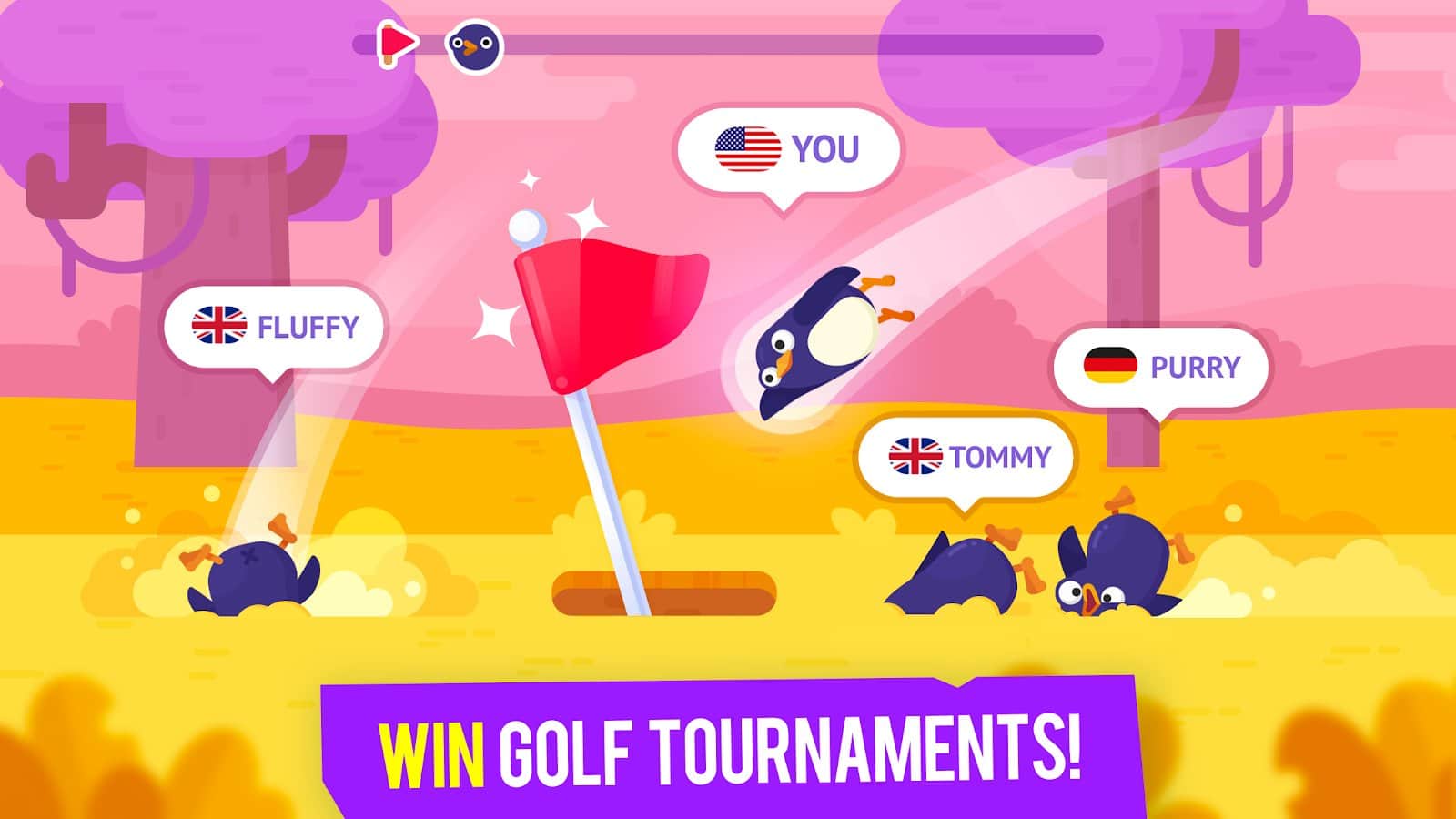 Golfmasters - Fun Golf Game – веселый гольф на андроид, где вы будете путешествовать по необычным локациям. В этой игре вы будете запускать в полет пингвина, который как оказалось неплохо летает. Бейте по пингвину изо всех сил и заставляйте его лететь как можно дальше, чтобы достичь лунки. Обходите по пути многочисленные преграды и препятствия и получайте отличные награды, проходя уровень. Играйте в эту игру и наслаждайтесь простым и понятным управлением, отличной яркой графикой и многочисленными уровнями.