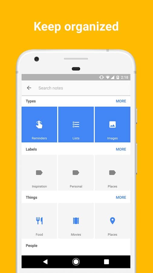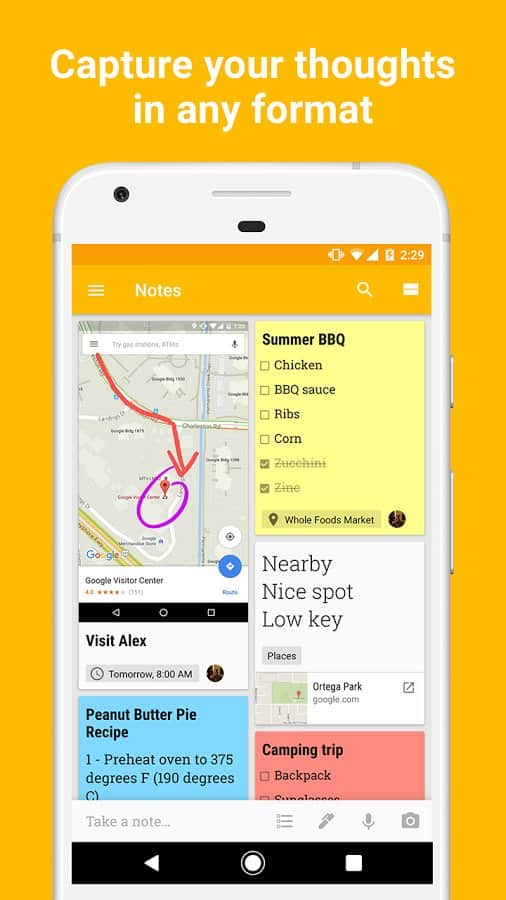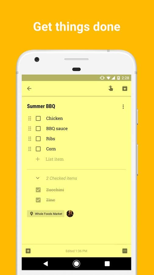 Фирменное приложение для создания заметок от Google публика любит за простоту и универсальность. Предельно простое оформление не мешает приложению легко справляться с любыми поставленными задачами: составление голосовых и фотозаметок, а если все же нужна текстовая, её тоже можно ввести голосом, списков, разделение тематик по цветам или при помощи тегов, архивирование старых записей. И на десерт: возможность делиться своими заметками по электронной почте и вести совместные записи с разных аккаунтов. И, конечно же, к каждой записи можно привязывать напоминание на определенное время.