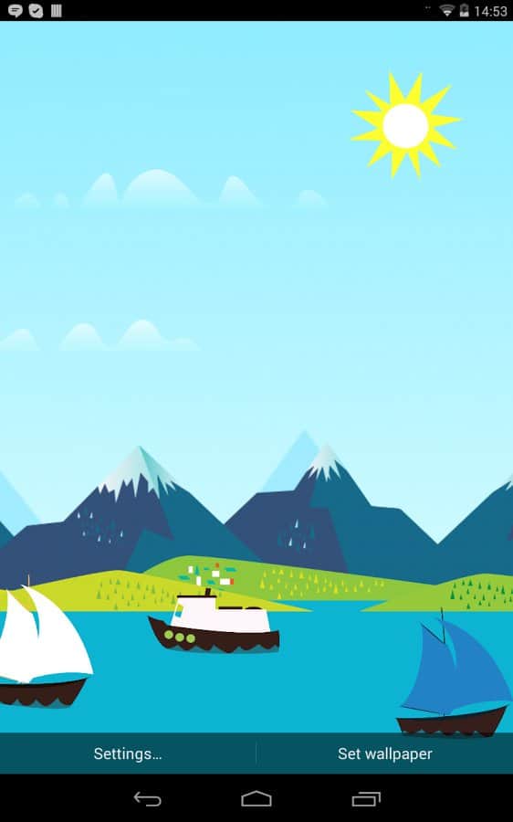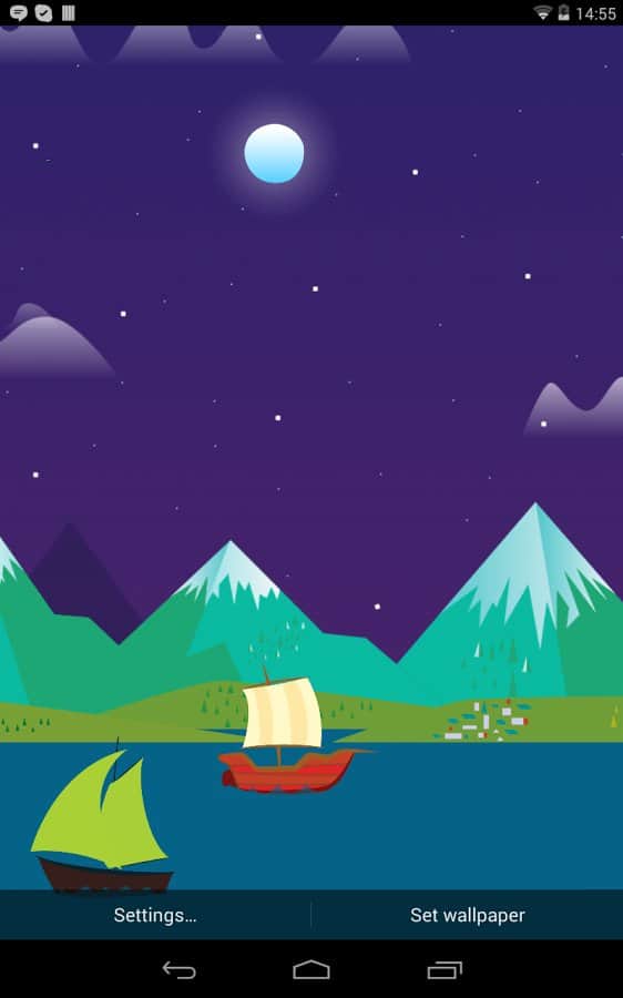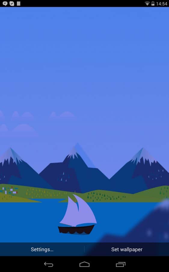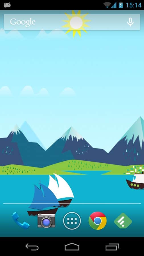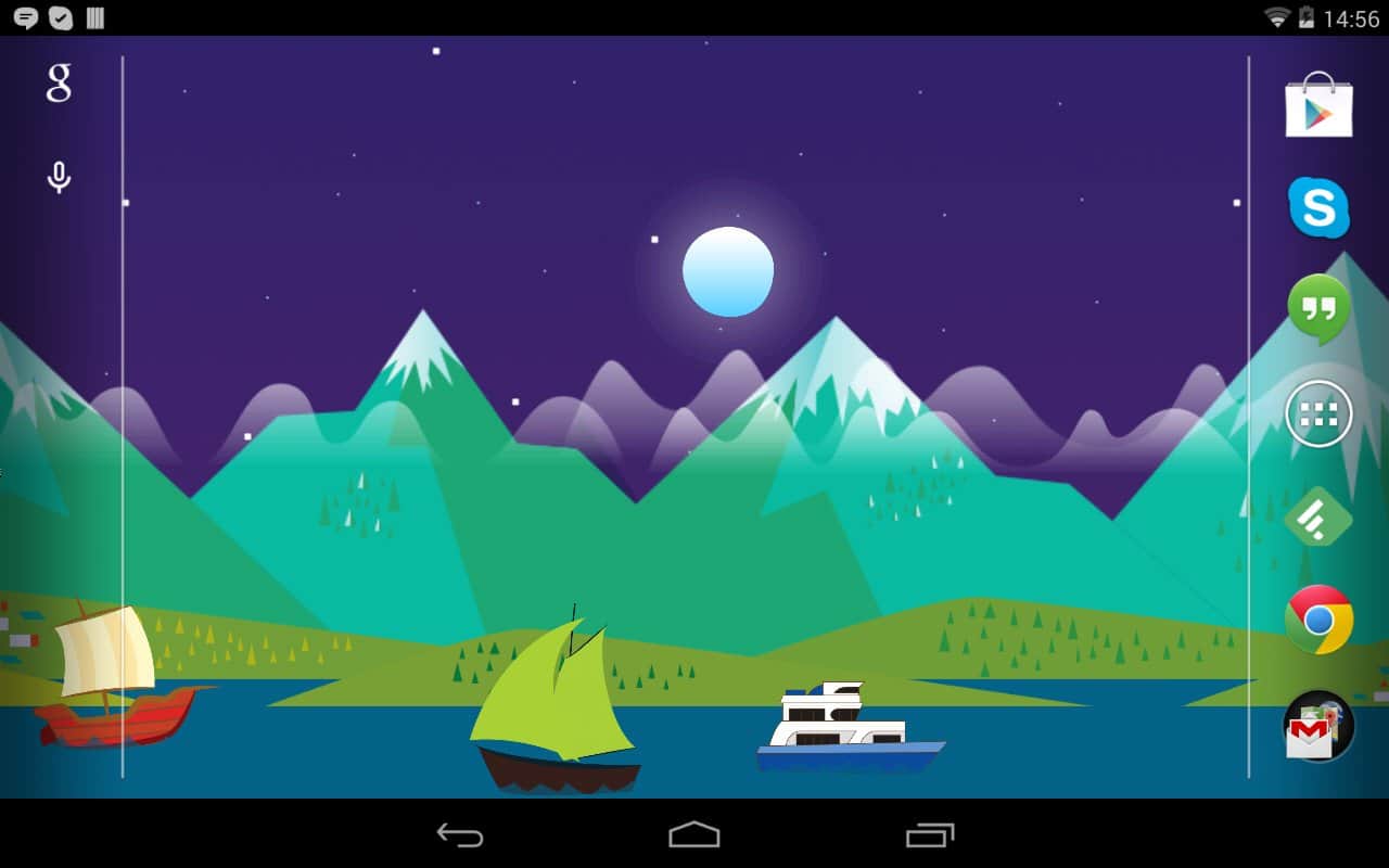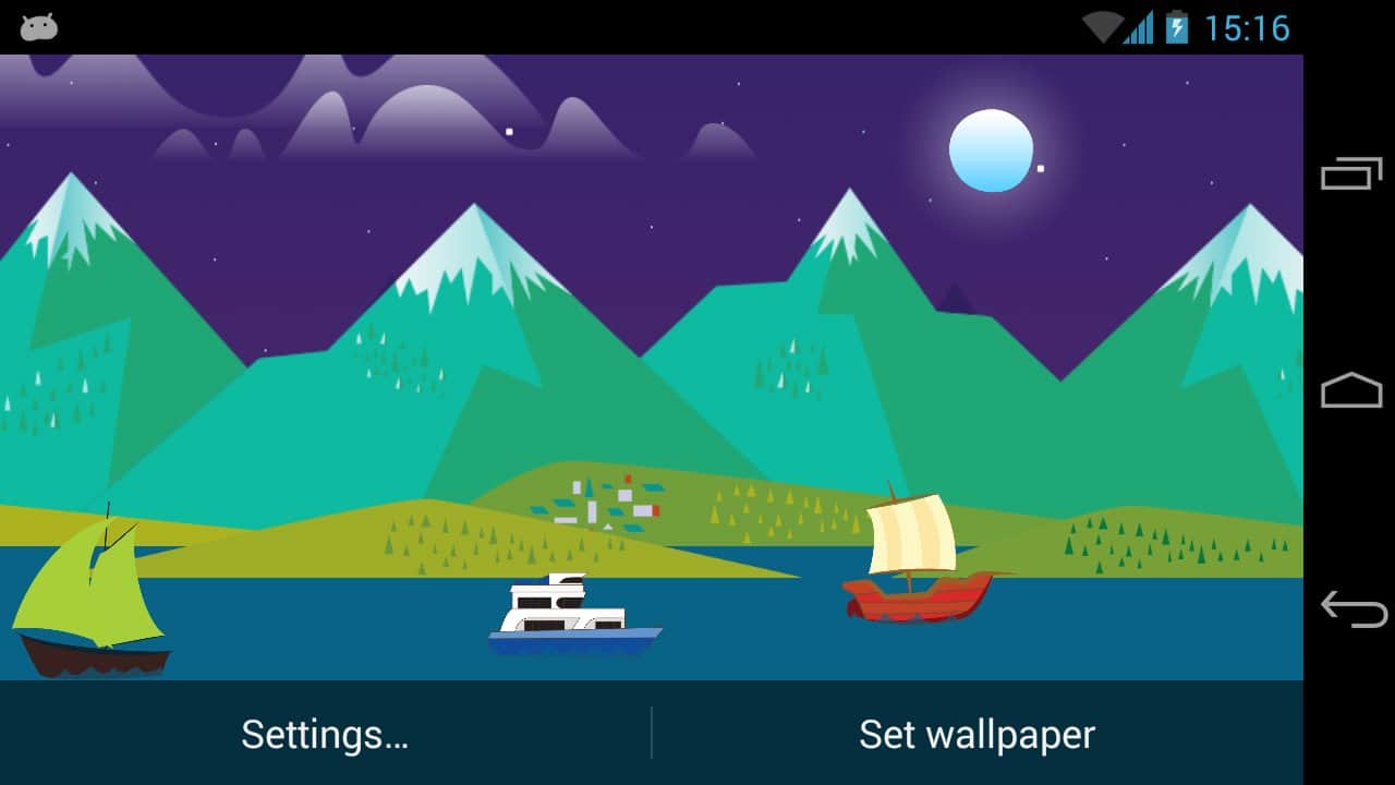 Google Now Live Wallpaper – приятные живые обои для андроид, выполненные в спокойных тонах с высокими горами, на которых давно уже лежит снег и небольшими корабликами в их сравнении, которые плывут день и ночь по реке, проложившей здесь некогда себе дорогу, в поисках счастья.