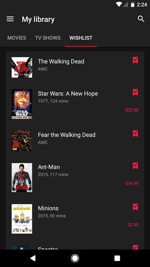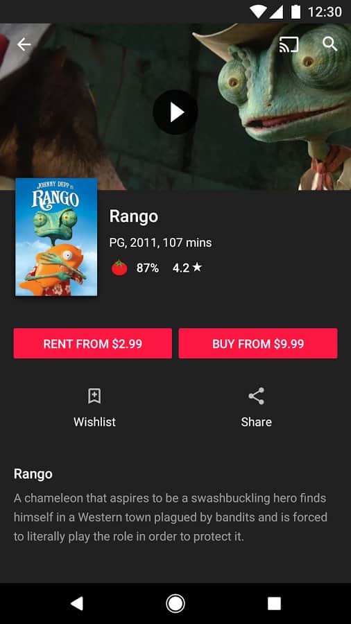 Google Play Фильмы - Просмотр всех новых фильмов онлайн, с помощью всем нам известного сервиса, от популярного разработчика. Все новинки, которые только вышли в кинопрокат уже здесь, не нужно покупать билет, можете взять фильм прямо в этом приложении. Вы даже сможете посмотреть его в режиме офлайн, так что после его скачивания, вам не понадобится интернет. Или же закажите фильм на прокат, и смотрите любимые фильмы в лучшем качестве. А если он ещё не вышел, просто добавьте нужное вам в список желаний, и вам обязательно придет оповещение, о том когда фильм можно будет купить или же взять напрокат. Так же, вы можете подключить свой девайс к телевизору, и посмотреть фильм на большем экране.