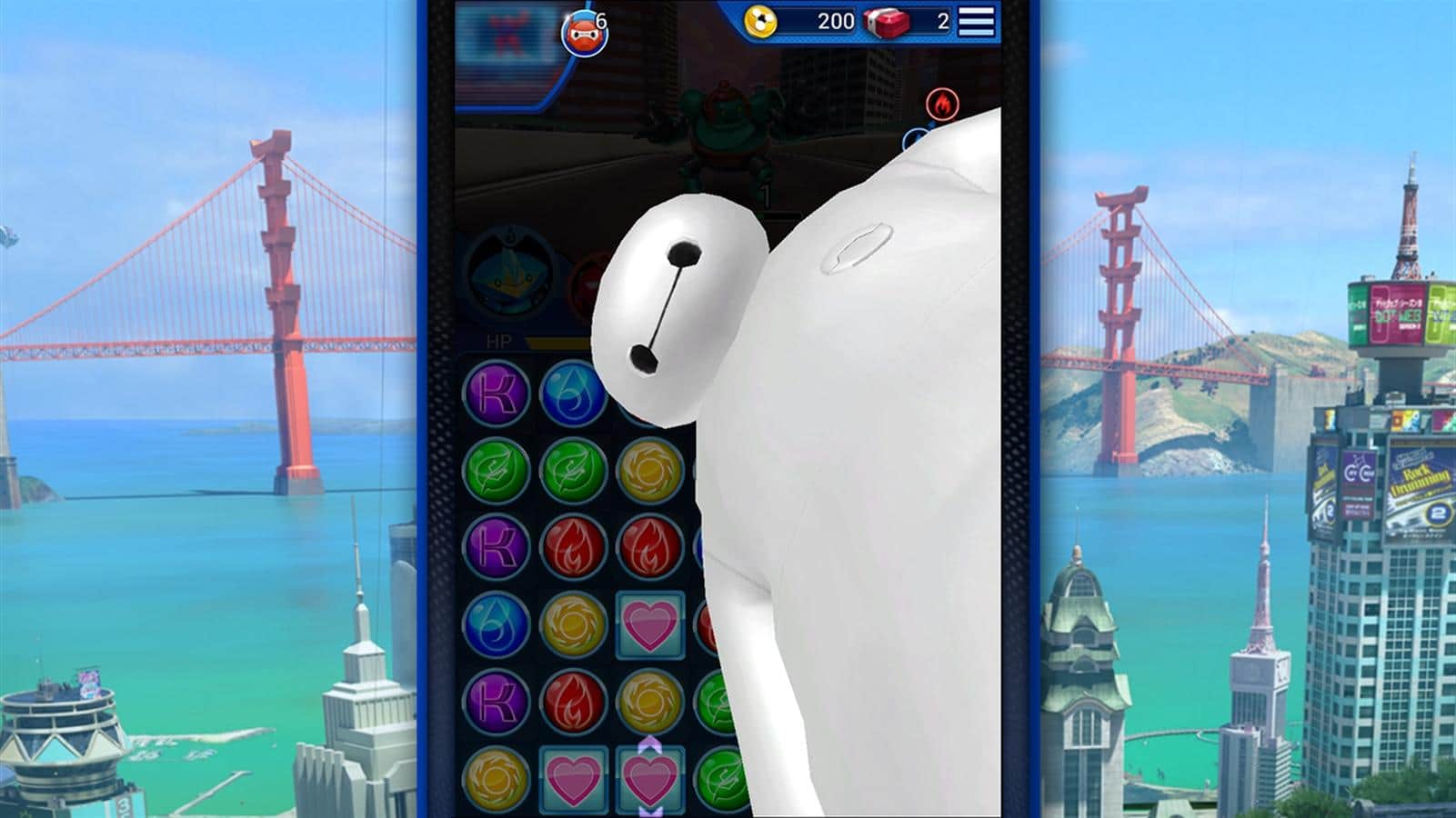 Город героев: Битва ботов – очередная игра «три в ряд» от студии Disney. В этой игре вашей главной задачей будет собрать свою команду героев знакомых вам из одноименного мультфильма «Город героев» и не дать врагам захватить мир. Составляйте по три и более ячейки в ряд и активируйте мощные атаки, не давая врагам не единого шанса на победу. Создавайте уникальные комбинации из различных ячеек и перепрограммируйте зараженных ботов, чтобы победить Яму. Постоянно повышайте уровень ваших героев, делая из них первоклассных боевых супер ботов. Собирайте редкие детали и бонусы и объединяйте свои усилия с друзьями, делая свою команду непобедимой.