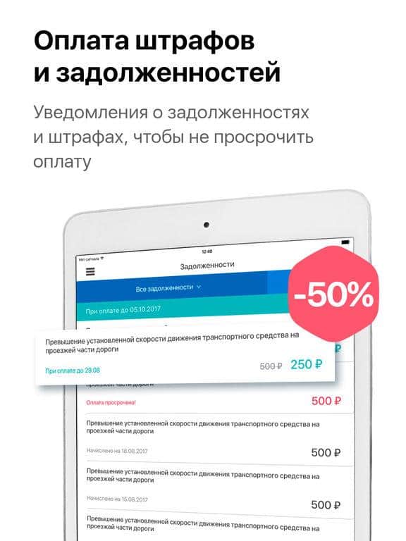 Возможность выбрать свой регион и заказать оплату штрафов со скидкой
