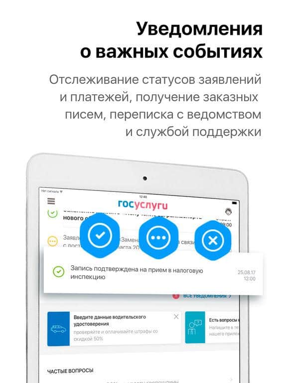 Госуслуги -приложение предоставляет пользователю широкий спектр возможностей: оплата штрафов для различных инстанций, госпошлин, задолженностей, извещение о состоянии лицевого счета в Пенсионном фонде, заказ услуги через мобильное устройство и многое другое. Особенности: