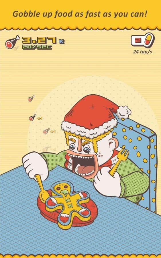 Gotta Eat Them All: Clicker – кликер на андроид, где вы будете помогать герою по имени Леон поедать как можно больше еды. Нажимайте на экран своего телефона как можно быстрее и помогайте Леону поедать странные блюда и утолять тем самый свой зверский аппетит. Чем чаще вы будете жать на экран, тем быстрее будет происходить смена блюд и герой, их будет поглощать с невероятной скоростью. Помогите герою съедать невероятные блюда и открывать для себя все более, невероятные столовые приборы. Нажимайте на экран и набирайте достаточное количество очков, чтобы посоревноваться с лучшими игроками со своего мира.