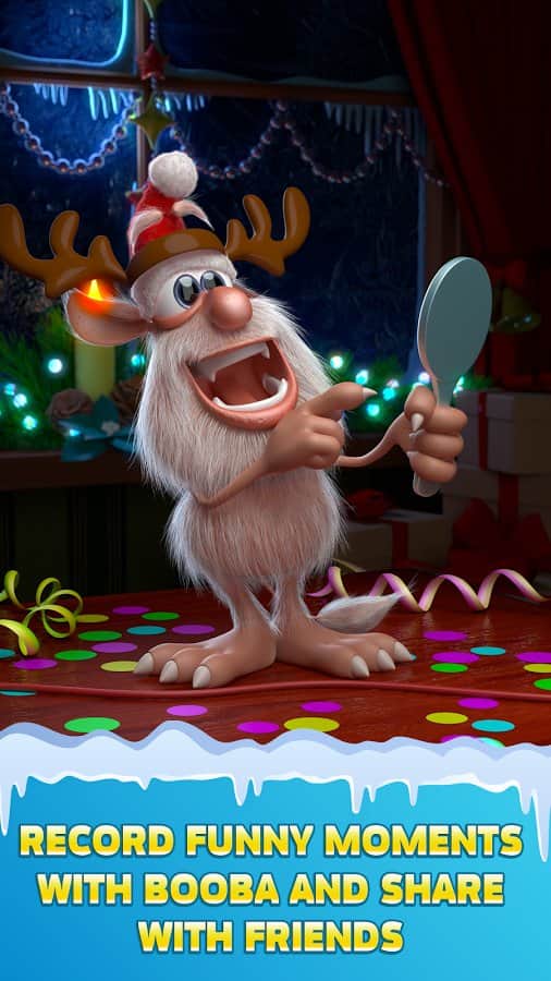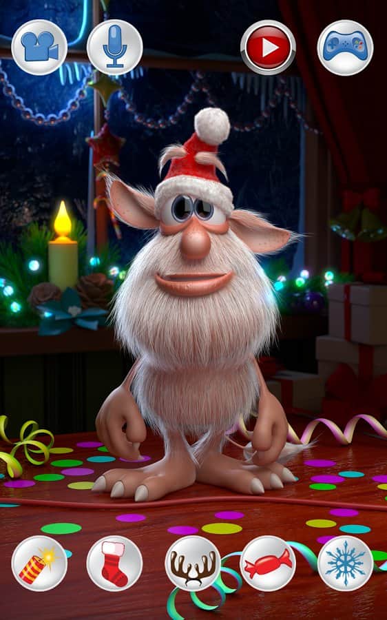 Взаимодействуй с Бубой: Тряси и переворачивай своё устройство, чтобы увидеть как Буба делает смешные и сумасшедшие трюки.