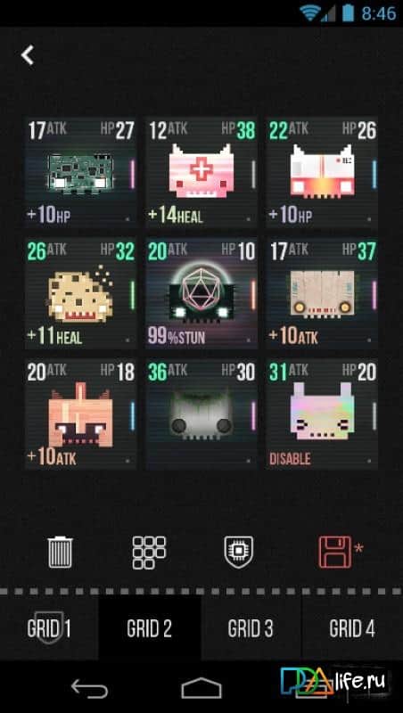 GR1D (grid) – карточная игра на андроид, с элементами стратегии. В этой игре вашей задачей будет собрать свою непобедимую коллекцию карт и взломать сетку противника. Соберите свою коллекцию карт, размещайте их в стратегически важных местах и усиливайте между ними связи. В игре вы найдете множество разнообразных и уникальных карт, которые будут постоянно обновляться. Наслаждайтесь неповторимой механикой игры и вступайте в схватку с сильными противниками игроками со всего мира. Усиливайте свои карты, добавляя им новые способности и возможности уничтожать противника. Разработайте свою стратегию ведения игры и побеждайте, становясь лучшим игроком.