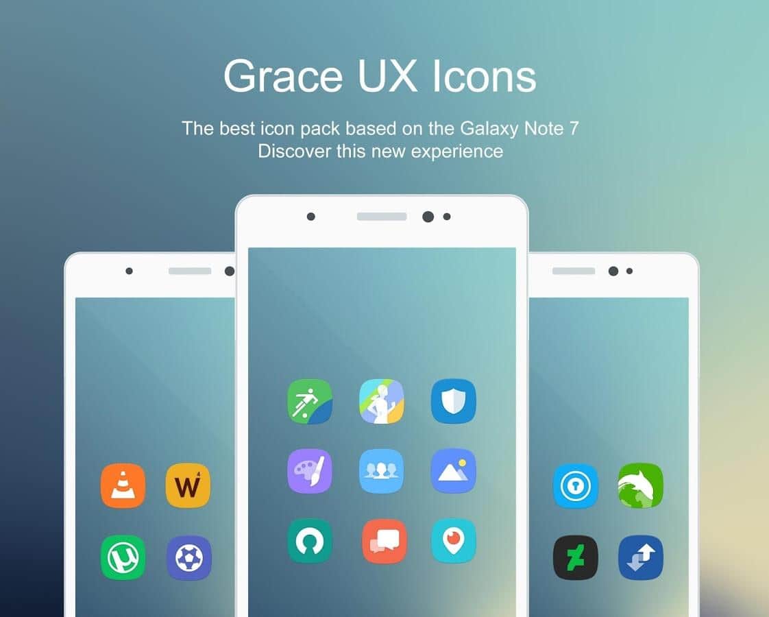 Grace UX - Icon Pack - Этот набор был основан на базе нового Galaxy Note 7. Здесь вы найдете все самые новенькие иконки для всех ваших приложений, и хоть на первый взгляд они выглядят простенько, уверяю вас это далеко не так. Вы сможете включать или выключать анимацию иконок, а так же быстро их заменять для одного или сразу нескольких приложений.