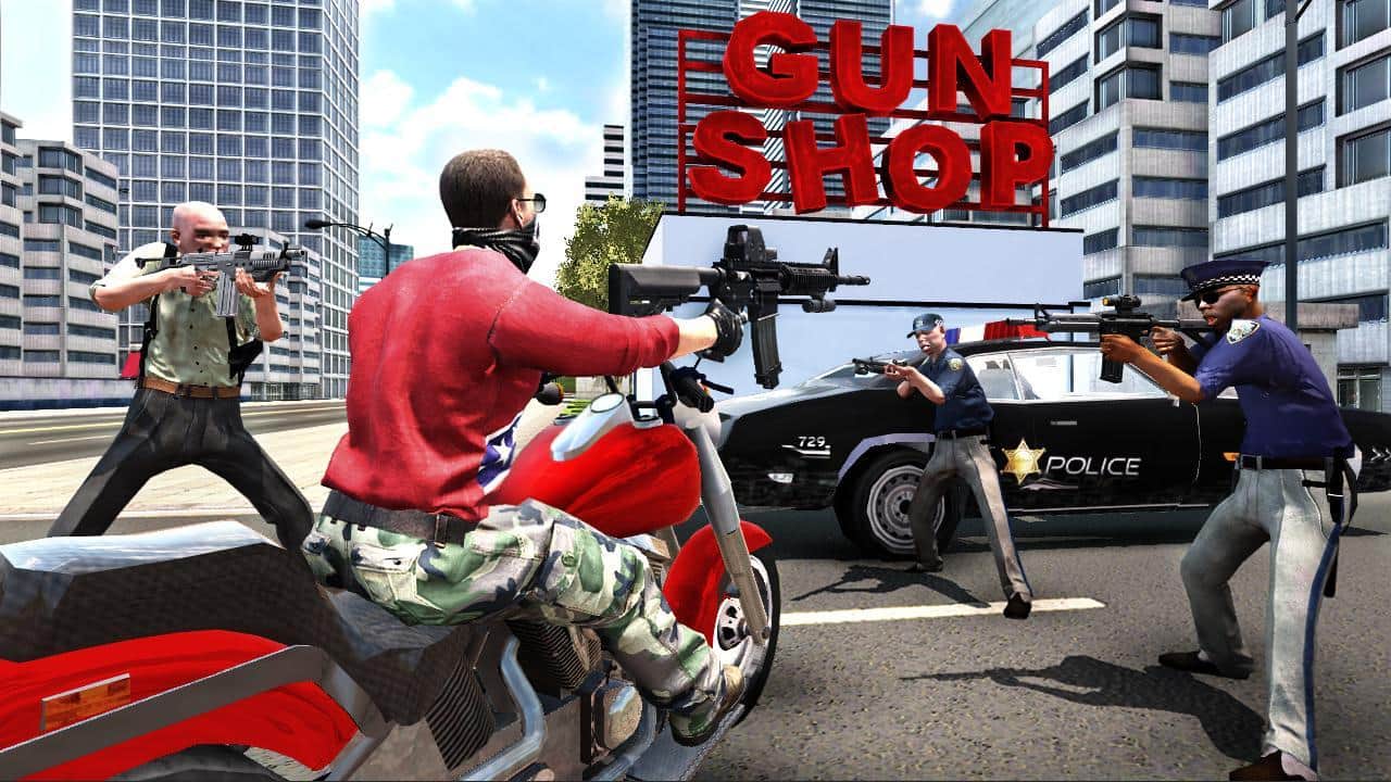 Grand Action Simulator - New York Car Gang – захватывающий симулятор на андроид, где вы будете управлять бандитом в преступном городе. В этой игре вы окажитесь в Нью-Йорке и будете исследовать город, катаясь на мотоцикле или гоночном автомобиле. Путешествуйте по различным районам города, делайте остановки чтобы одеть своего героя, снарядить его оружием или ограбить банк. Вступайте в перестрелку с многочисленными противниками и мафией с разных стран и добивайтесь отличных результатов. Выполняйте миссии и задачи и сформируйте свою криминальную банду.